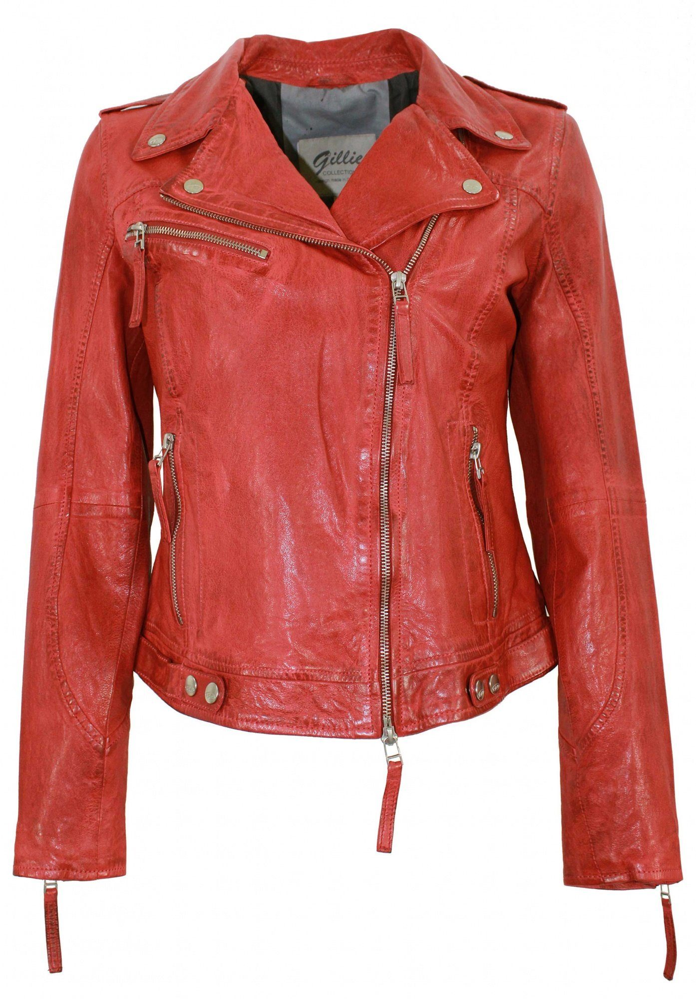 Besondere Merkmale | Damen Lederjacke Lammnappa Bikerjacke rot |