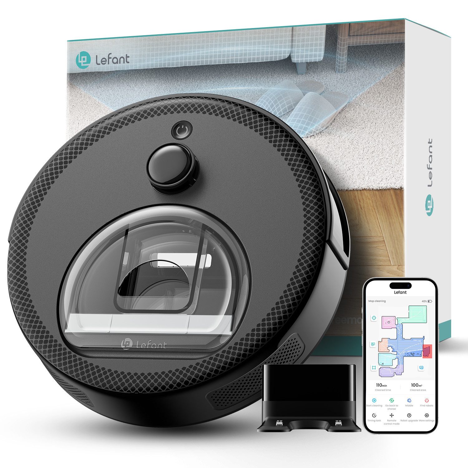 Top-Features | 1.Freemove-Technologie zur Erkennung des gesamten Gehäuses 2. dToF-Laserradar und 190°-PSD-Technologie für präzise Hinderniserkennung 3. Erkennung von Teppichen und automatische Leistungssteigerung 4. 9,5 cm ultraschlankes Design und hoher Reinigungsabdeckung |