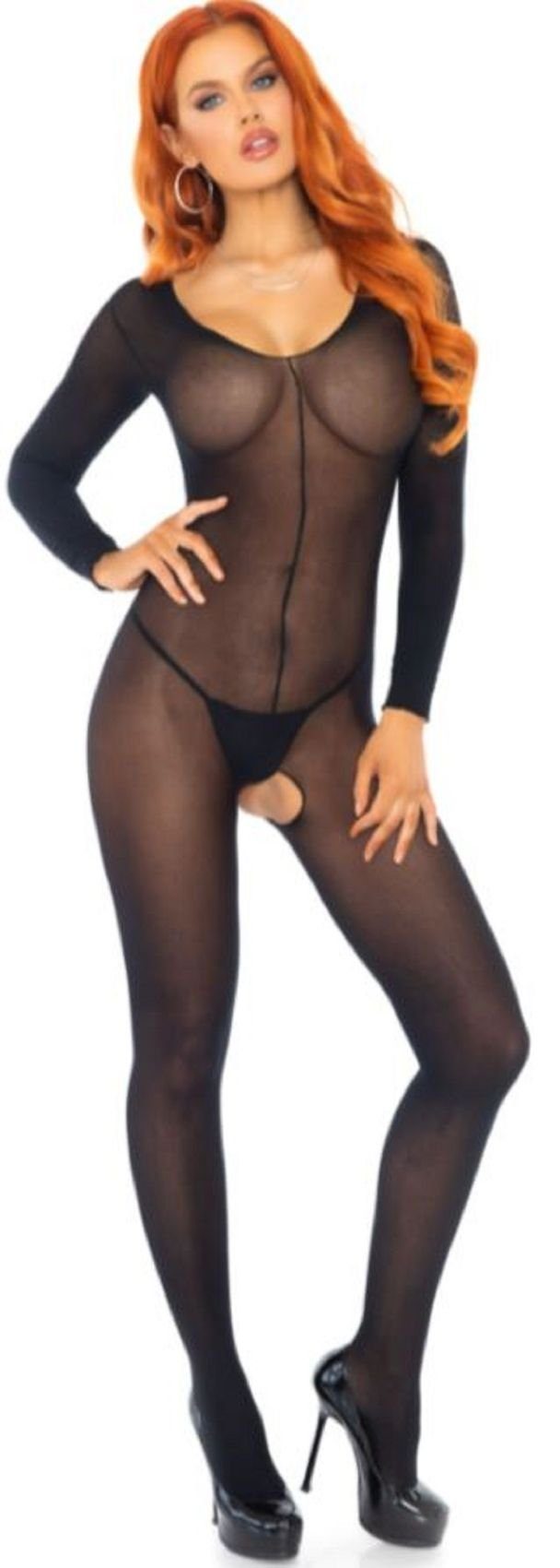 Schrittloser Body von Leg Avenue mit langen Ärmeln, Rundhalsausschnitt, tiefem Rückenausschnitt und offenem Beinausschnitt. Dieses Must-Have-Basic ist unverzichtbar in Ihrem Kleiderschrank und kann mit verschiedenen Styles kombiniert werden.