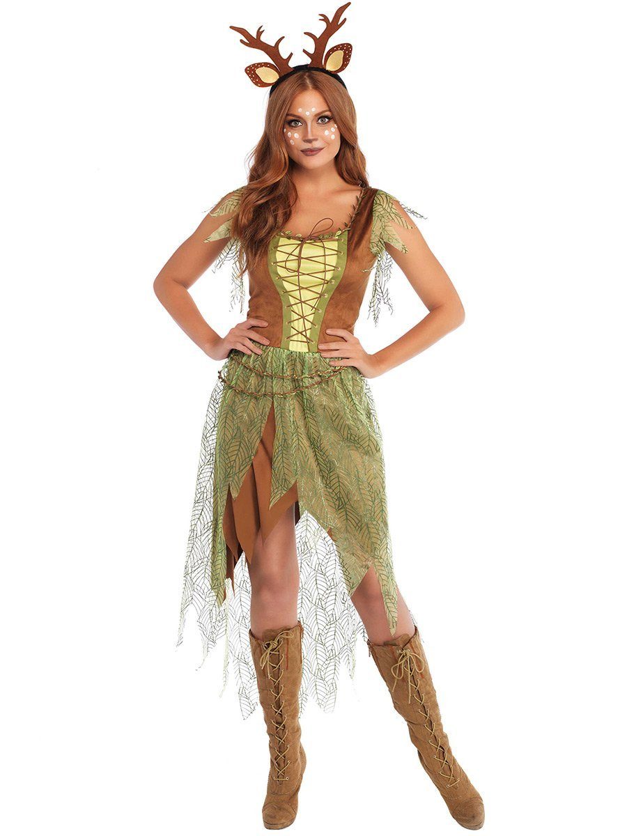 Ausstattung | - Fabelhafter Faun Kostüm zweiteilig- mit Kleid- mit Rehhörner-Haarband- ohne Stiefel |