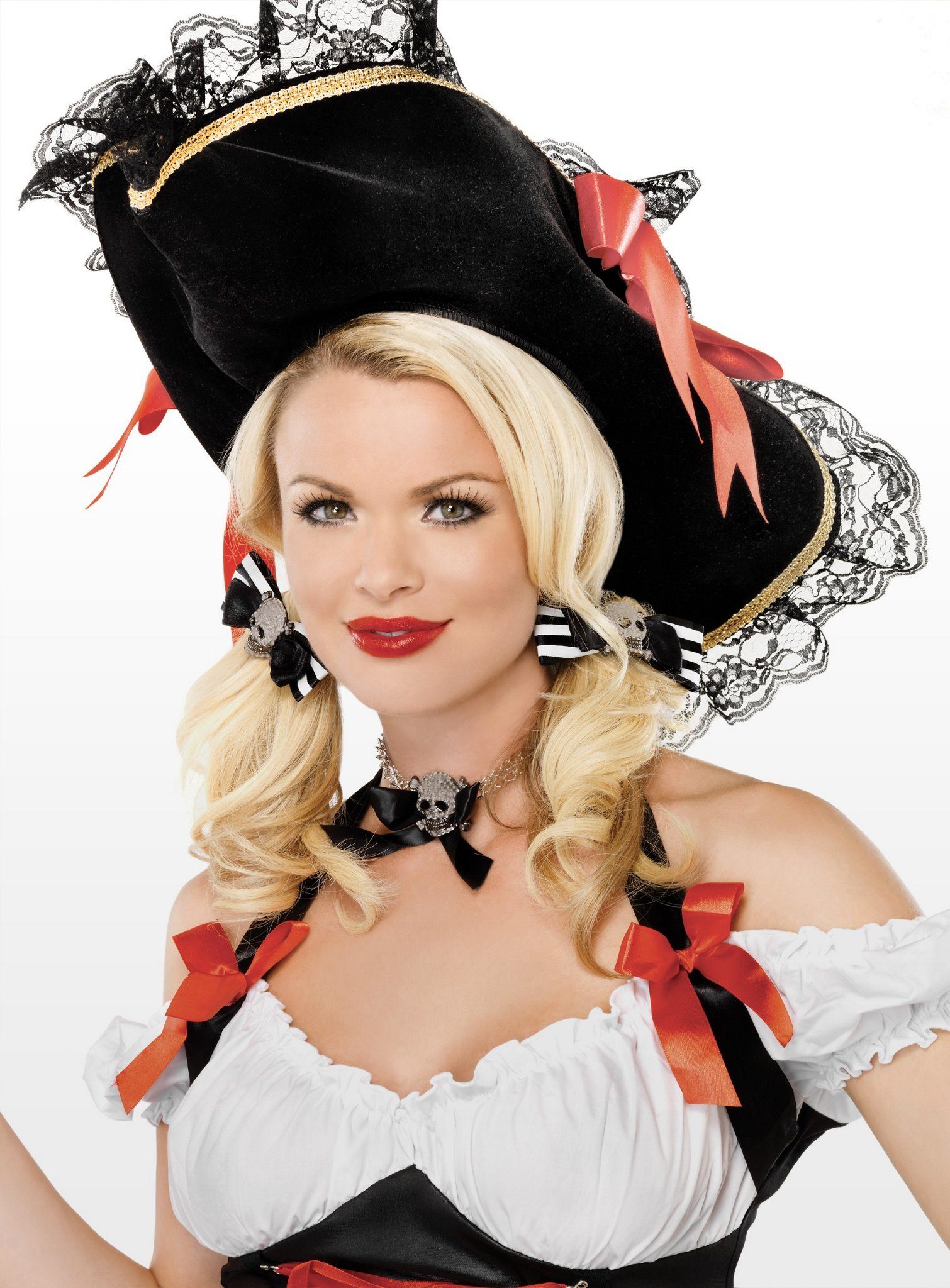 Ausstattung | - ein Paar gestreifte Piraten Haarschleifen schwarz-weiß- mit Haarklemmen- ohne sonstiges Zubehör |
