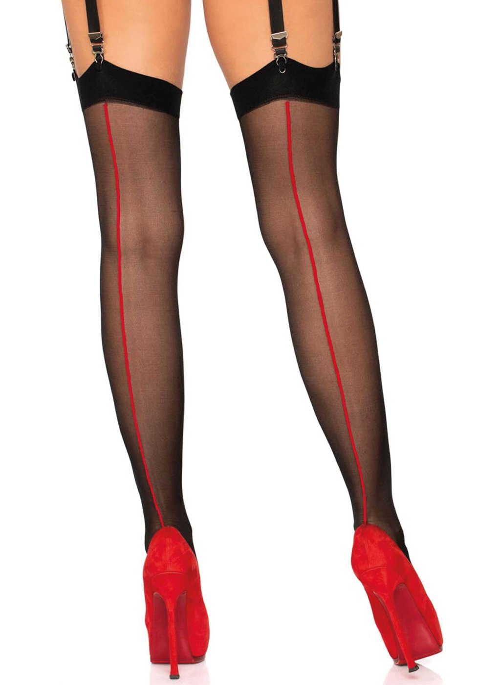 Durchsichtige Elastan-Strümpfe mit Naht.