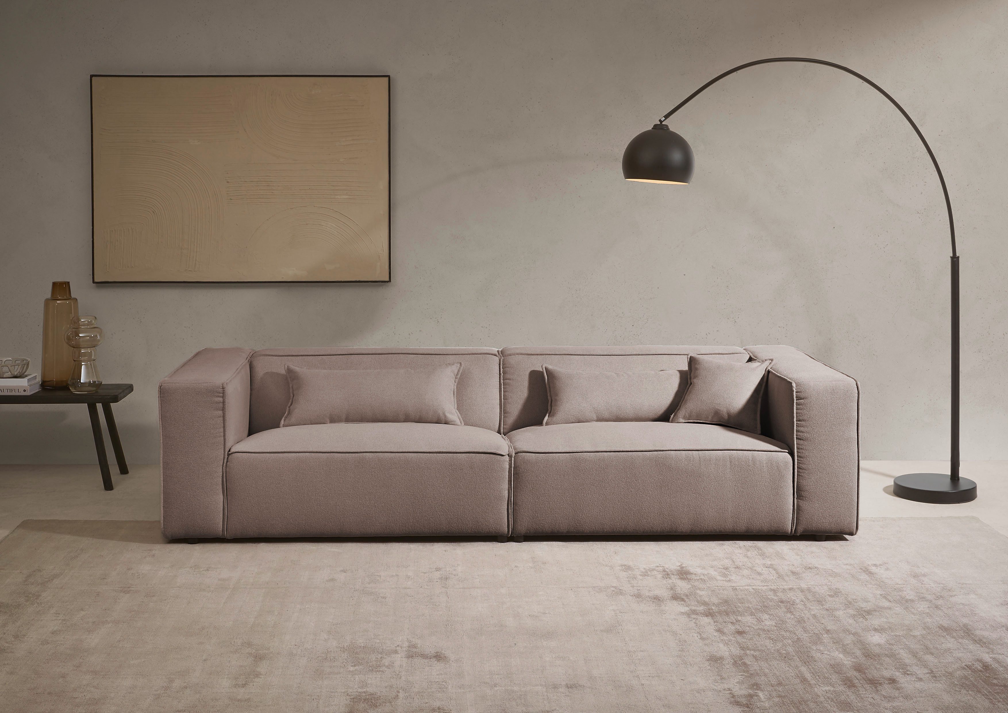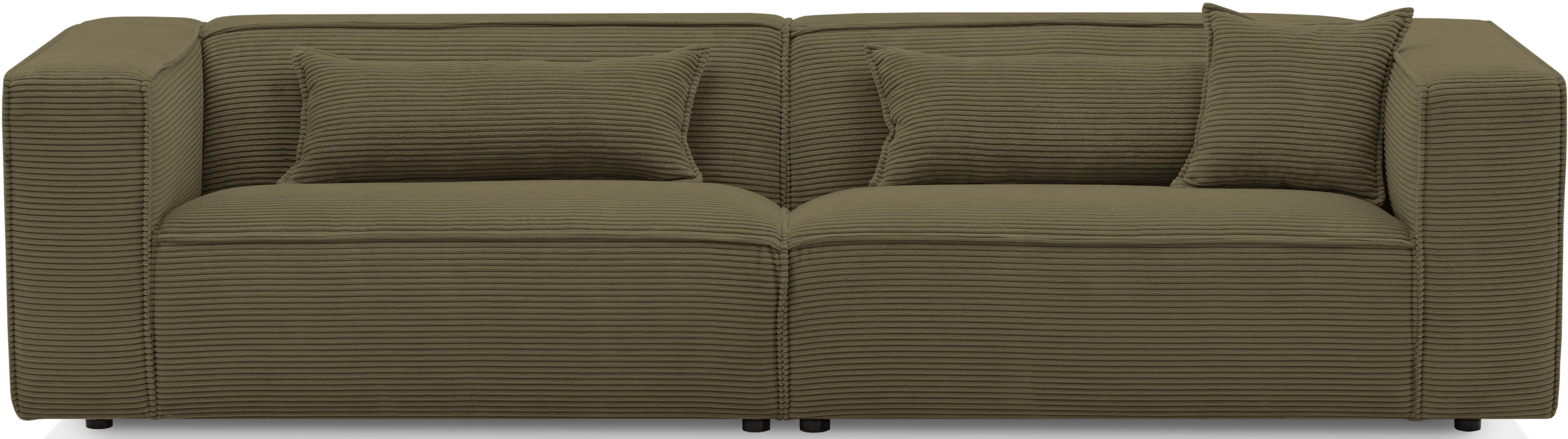 Praktisches Design trifft auf Komfort — der 3-Sitzer »PIARA, Couch mit Kedernaht, Sofa in Cord, Leinenoptik o. Strukturstoff« von LeGer Home by Lena Gercke.