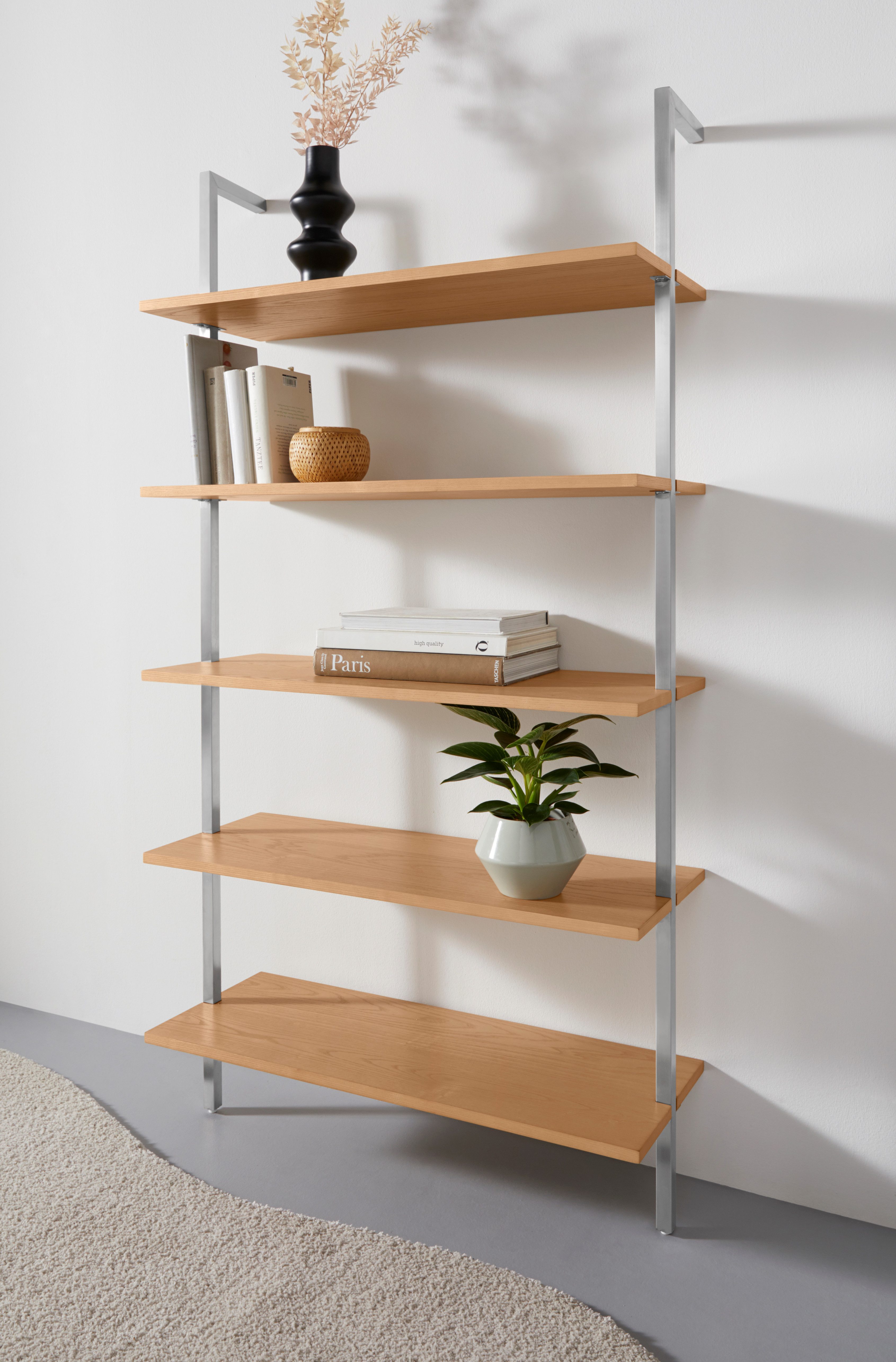 Du brauchst noch mehr Platz für deine Habseligkeiten? Dann solltest du einen Blick auf das Ablageregal »Aninnar« von LeGer Home by Lena Gercke werfen. Für einen tollen optischen Effekt und einen besseren Schutz der Oberfläche sorgt der aufgetragene Lack. Das Regal steht auf Filzgleitern aus Metall. Diese schützen deinen Fußboden vor Kratzern. Die maximale Belastbarkeit liegt bei einem Gewicht von 25 Kilogramm.
