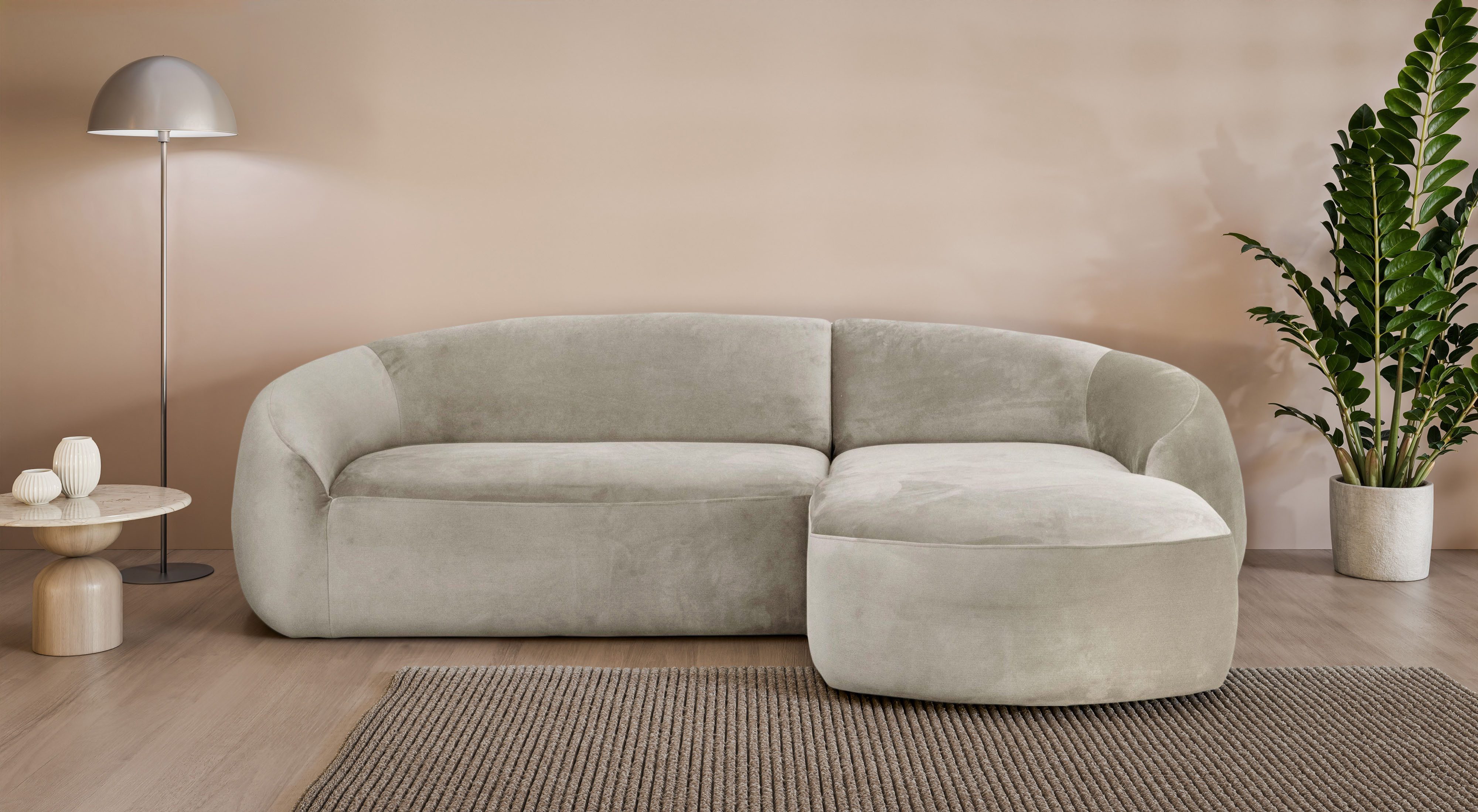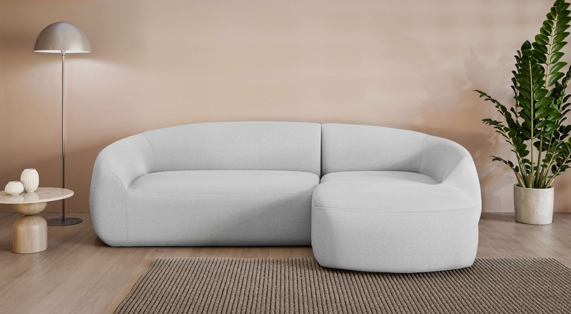 Dieses Ecksofa »YANI, L-Form, Designersofa, organische Form, Maße B/T/H: 255/170/81 cm« von LeGer Home by Lena Gercke bietet dir dank der Wellenunterfederung hohen Sitzkomfort und Tragfähigkeit. Beim Ecksofa befindet sich die Recamiere, von vorne betrachtet, rechts. Bei etwa 120 Kilogramm liegt die maximale Belastbarkeit pro Sitzplatz. Der Bezug zeichnet sich durch die im 90° Winkel überkreuzende Fäden aus, die dem Stoff seine feine und weiche Struktur verleihen. Dieses Modell wurde von Hand gefertigt.