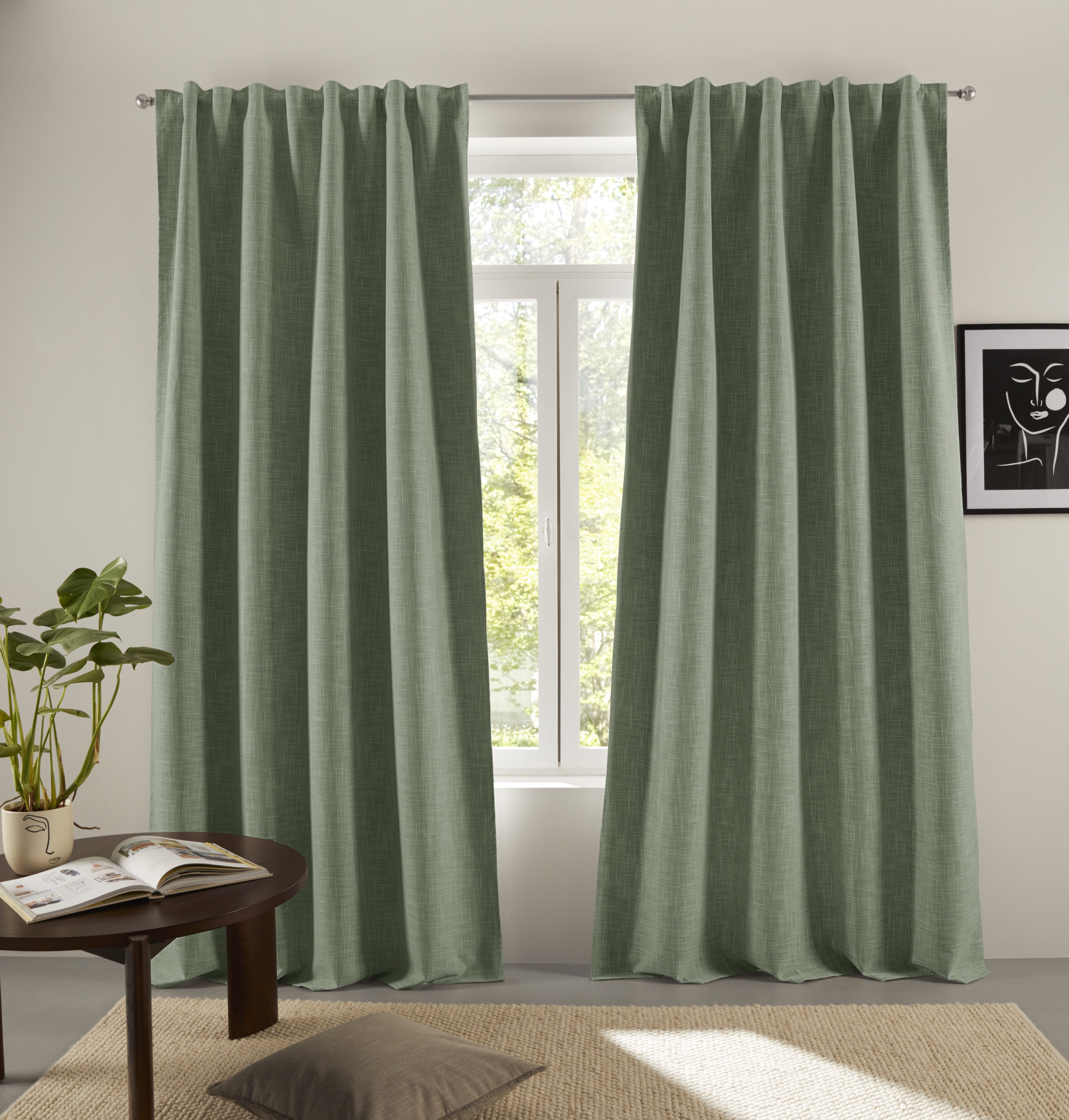 Hinweis Dekoration | Am Fenster fertig dekoriert, reduziert sich die Breite um ca. die Hälfte. Die angegebenen Maße sind Stoffmaße. |