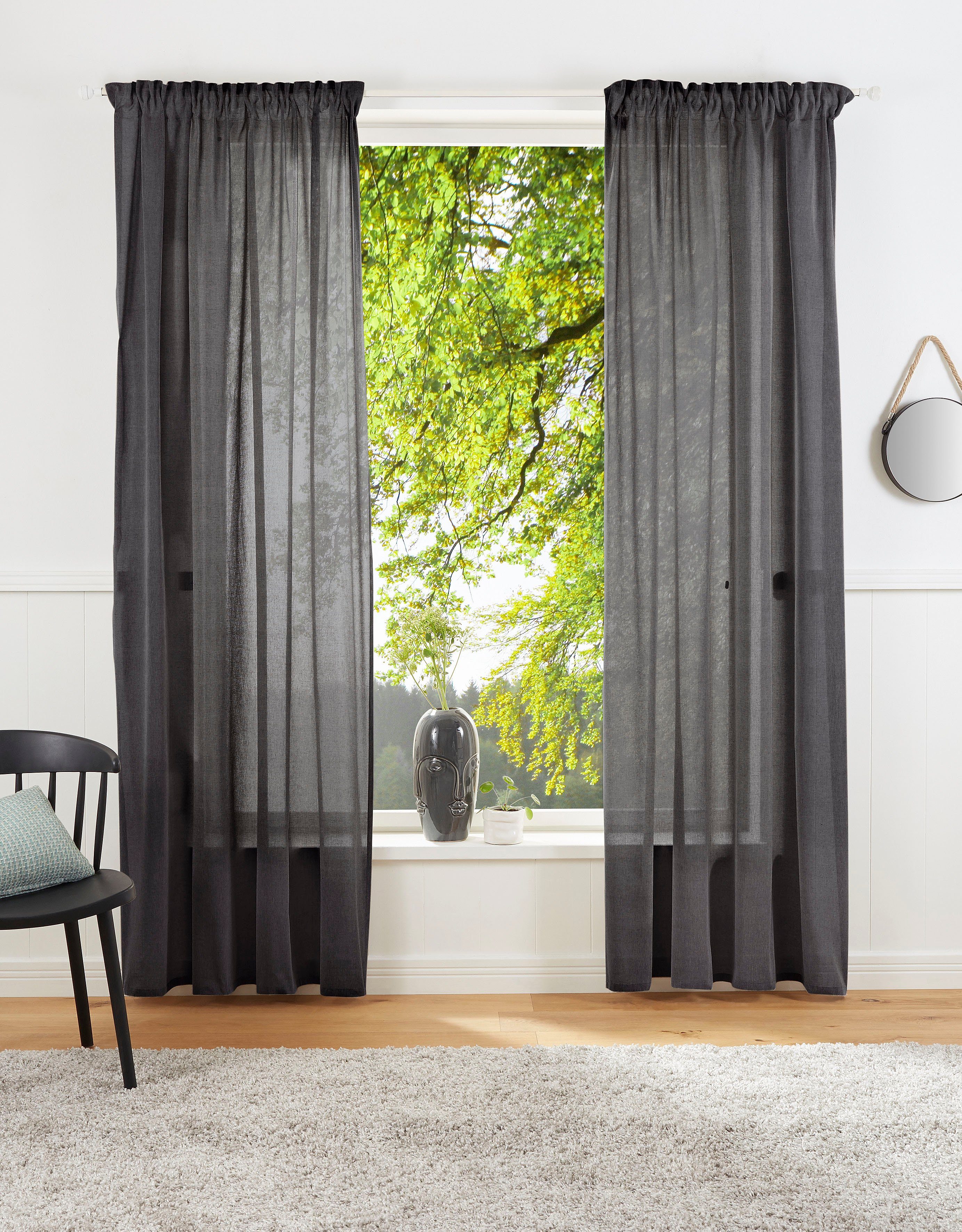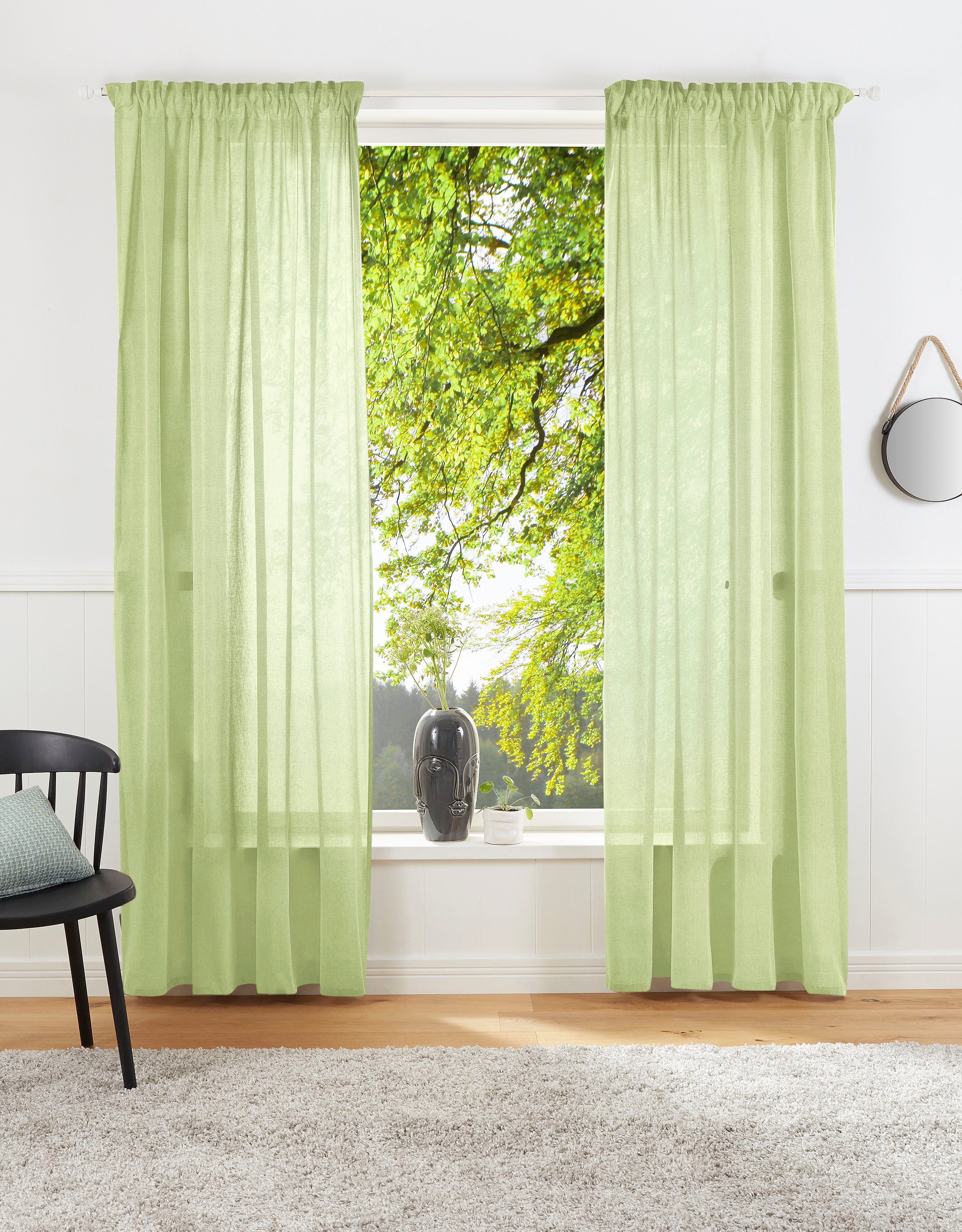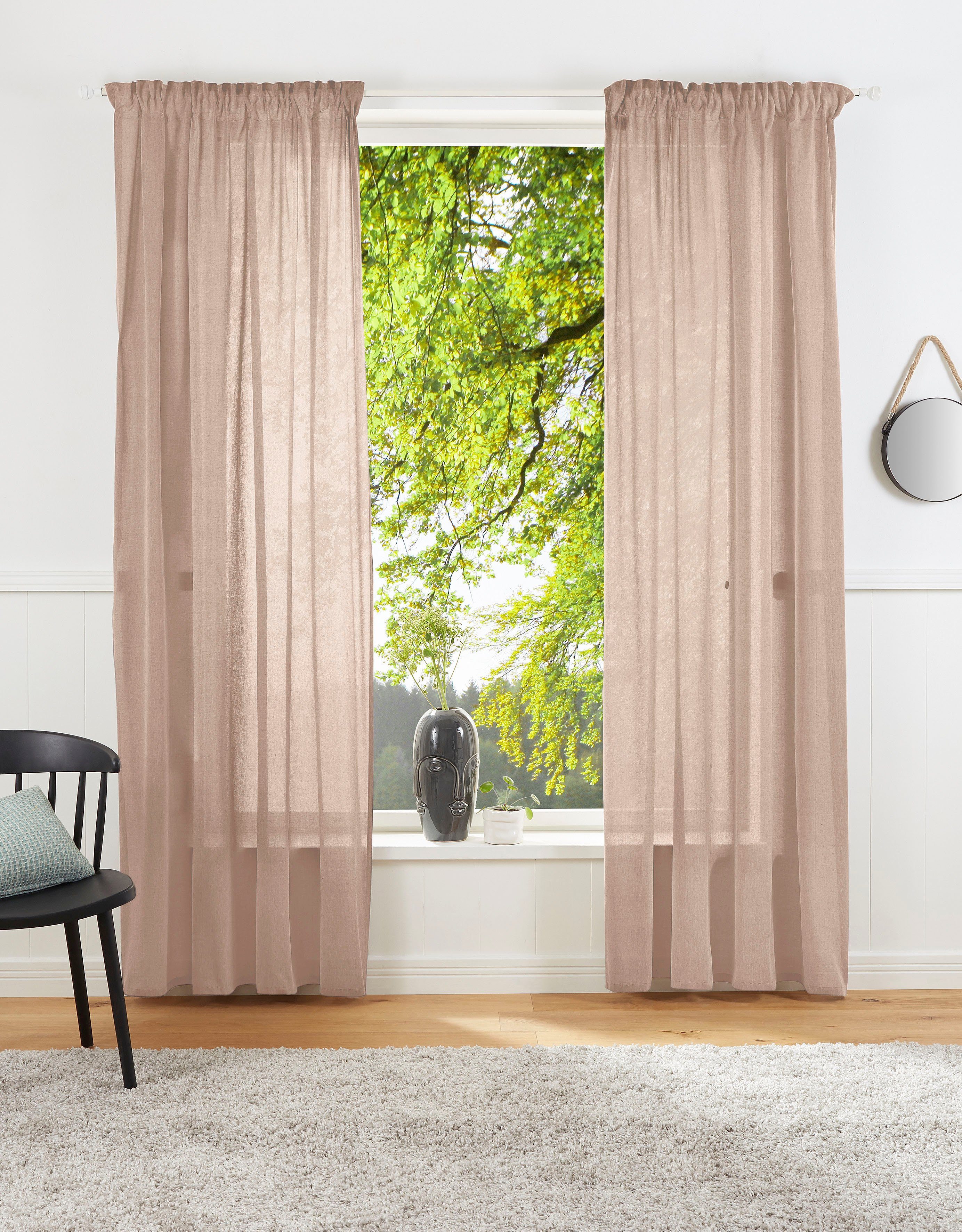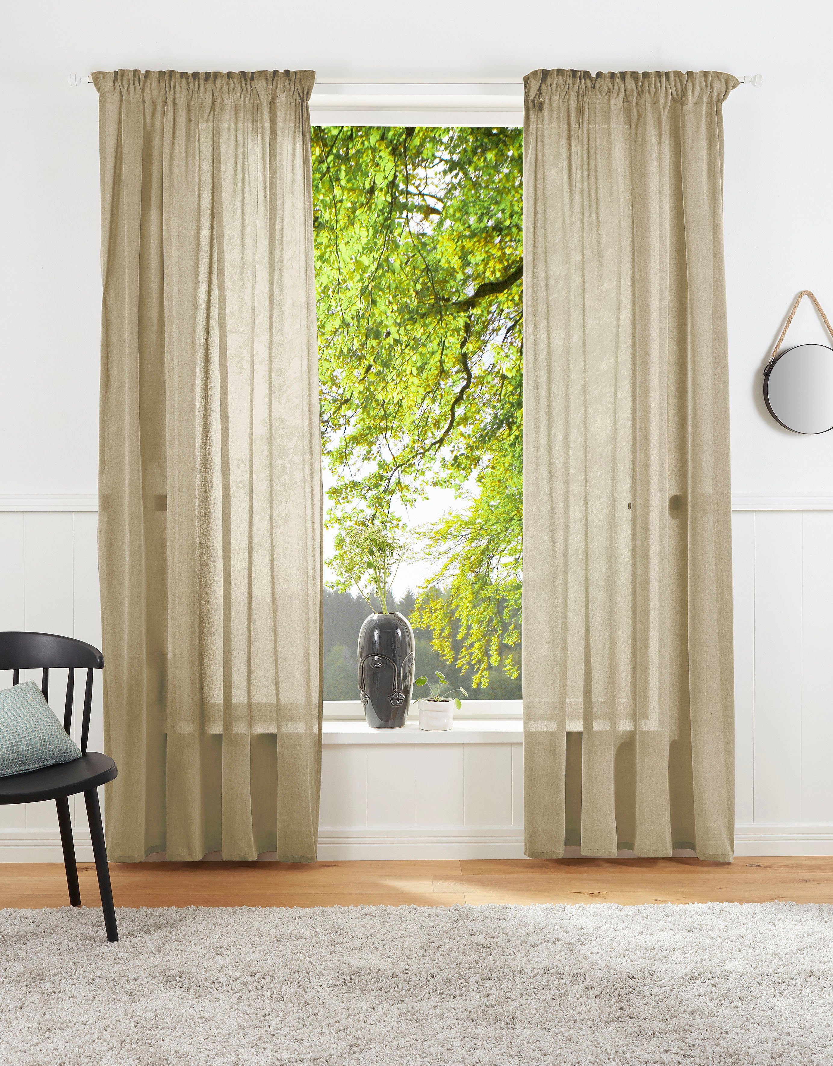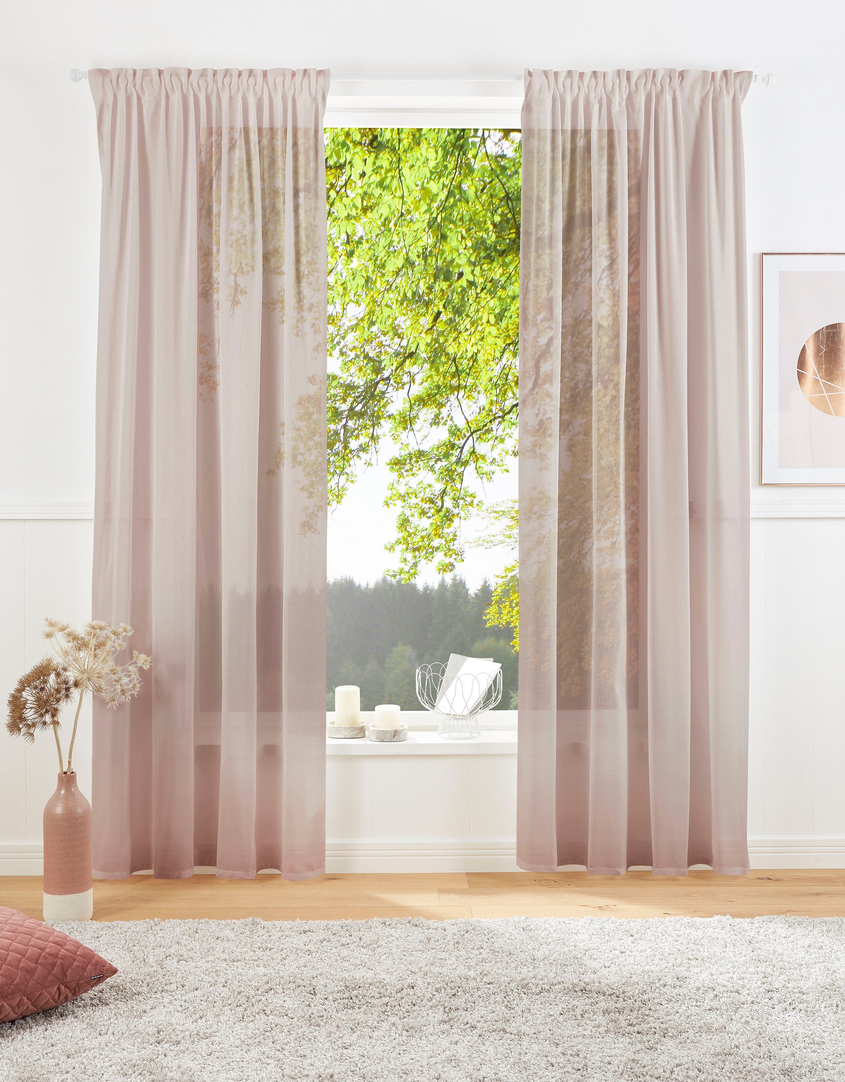 Hinweis Dekoration | Am Fenster fertig dekoriert, reduziert sich die Breite um ca. die Hälfte. Die angegebenen Maße sind Stoffmaße. |