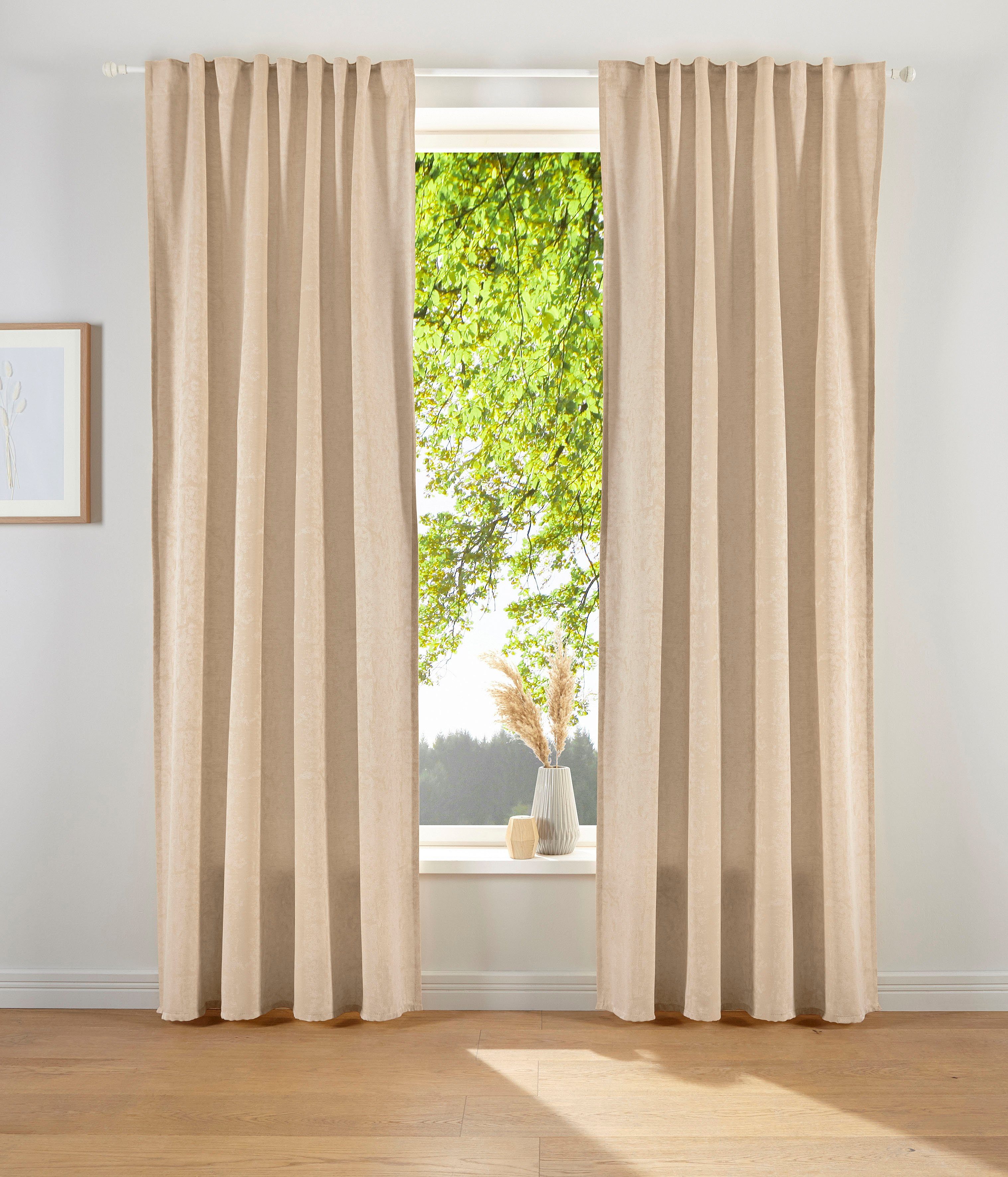 Hinweis Aufhängung | Montageart 1: Aufhängung mittels Gardinenröllchen (nicht im Lieferumfang enthalten) in der Gardinenschiene. Montageart 2: Aufhängung mittels verdeckter Schlaufen an der Gardinenstange. |