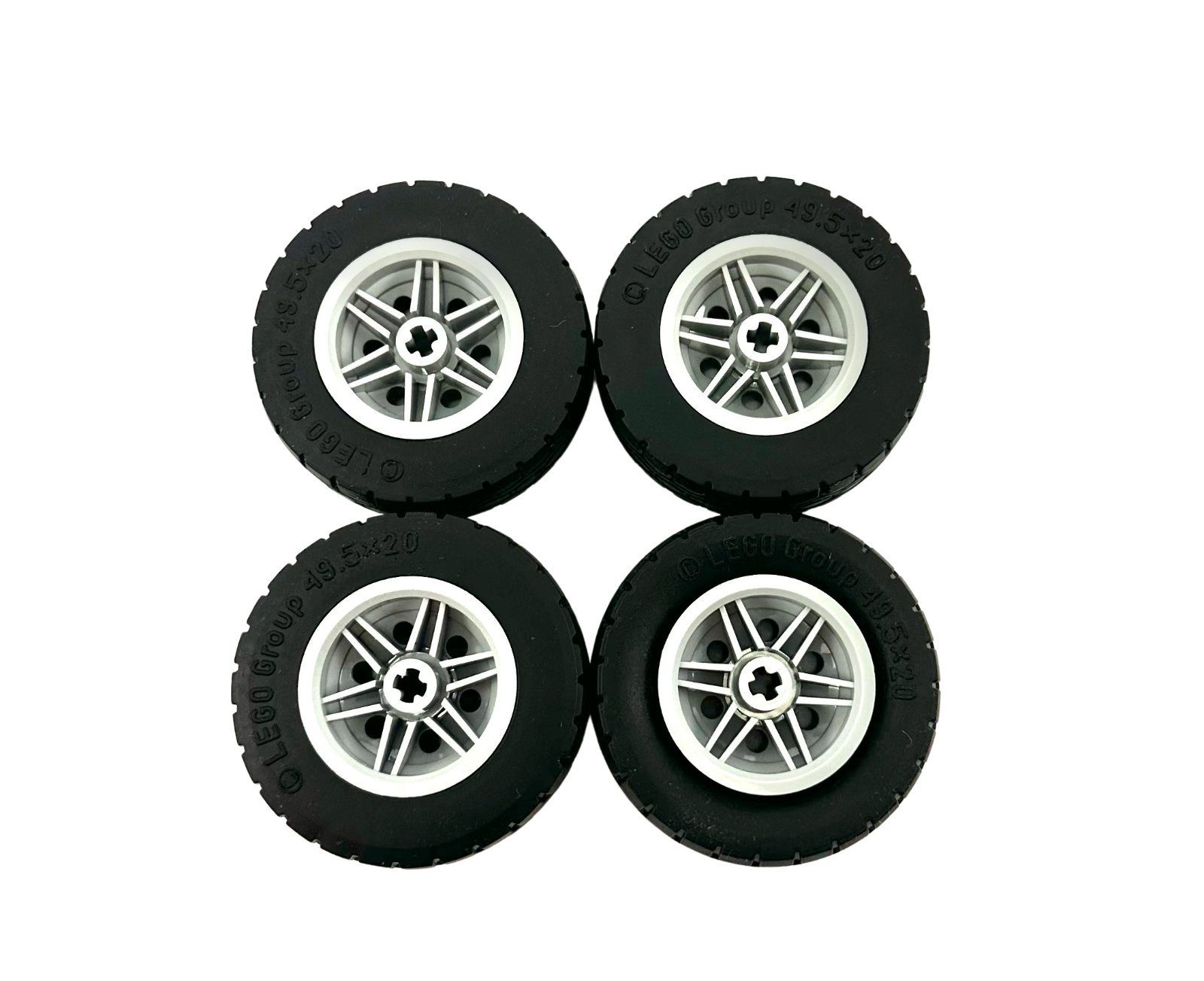 Lieferumfang | Sie erhalten: LEGO® 49.5x20 Technik Reifen Felgen Satz Hellgrau NEU! Menge 4x |