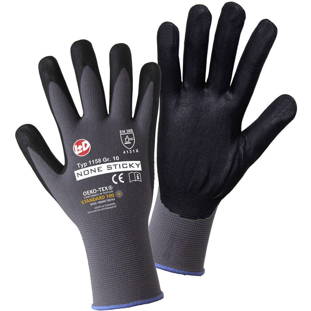 Schwarze micro-foam Nitrilbeschichtung in der Handfläche bietet einen exzellenten, sicheren Nass- und Trockengriff und bewirkt den „none sticky“ Effekt, d.h. es entsteht ein nicht klebender Effekt an Materialien durch die micro-foam Nitrilbeschichtung, z.B.: klebt nicht an Verpackungsbändern, die atmungsaktive Beschichtung hält die Hände kühl und trocken