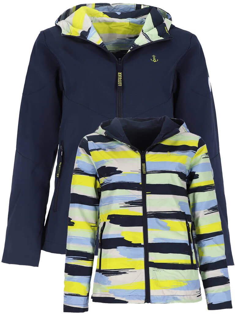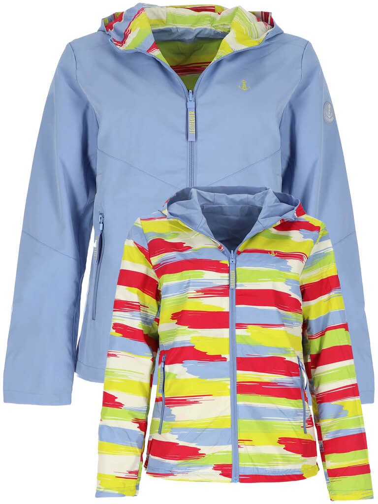 Die eine Seite ist unifarben und passt ideal zu klassischen Outfits, während die andere Seite mit modischen, bunten Streifen für einen frischen und lebendigen Look sorgt. Die Kapuze und der durchgehende Frontreißverschluss schützen zuverlässig vor Wind und Wetter, sodass Sie bei jeder Gelegenheit bestens ausgestattet sind. Dank einer Wassersäule von 5000 mm ist diese Damen-Funktionsjacke wasserabweisend und hält Sie auch bei leichtem Regen angenehm trocken. Gleichzeitig sorgt die Atmungsaktivität von 3000 mvp für ein angenehmes Körperklima – ideal für längere Spaziergänge oder aktive Tage in der Natur. Mit seitlichen Eingrifftaschen mit Reißverschluss auf beiden Seiten bietet die Jacke praktischen Stauraum für wichtige Dinge wie Smartphone, Schlüssel oder Geldbörse. Das hochwertige Material sorgt für angenehmen Tragekomfort, während die bequeme Passform Bewegungsfreiheit für all Ihre Aktivitäten ermöglicht.