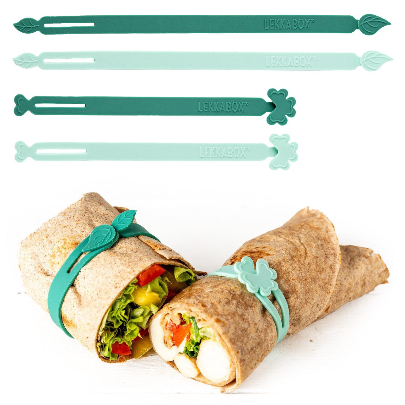 LEKKABOX® Loop Wrapbänder 4er Set – Wraphalter für Tortilla Wraps To Go & Brotdose Mit den wiederverwendbaren Loop Wrapbändern im 4er Set bleiben Wraps, Tortillas und Sandwiches unterwegs perfekt in Form. Die flexiblen Wraphalter aus lebensmittelechtem Silikon fixieren den Snack zuverlässig und passen ideal in Brotdosen und Lunchboxen – ob für Schule, Büro oder Picknick.