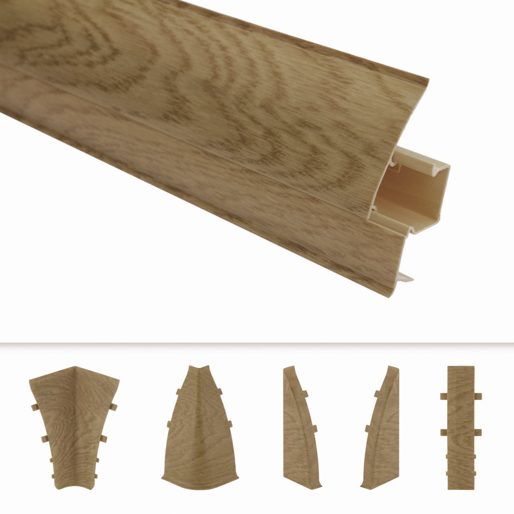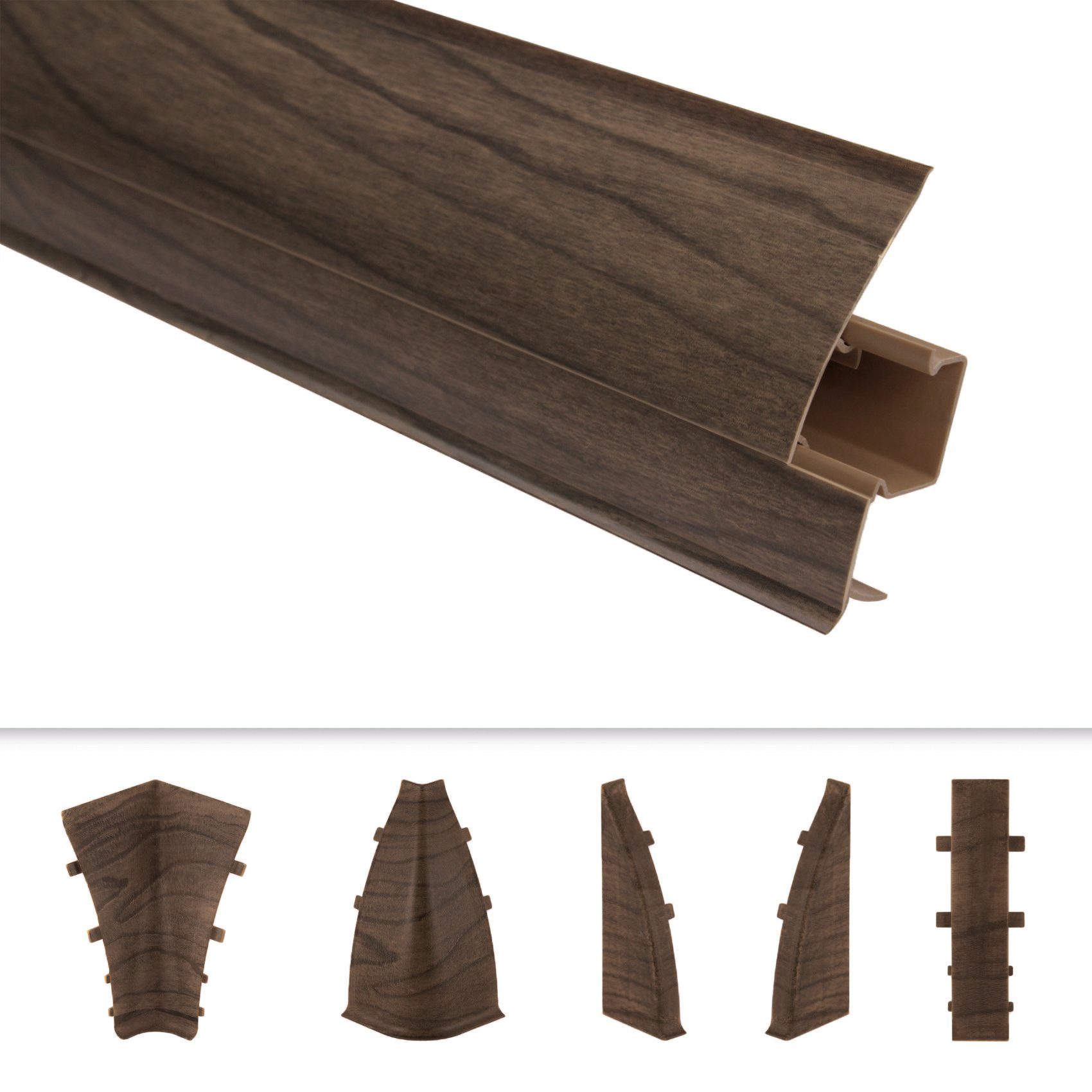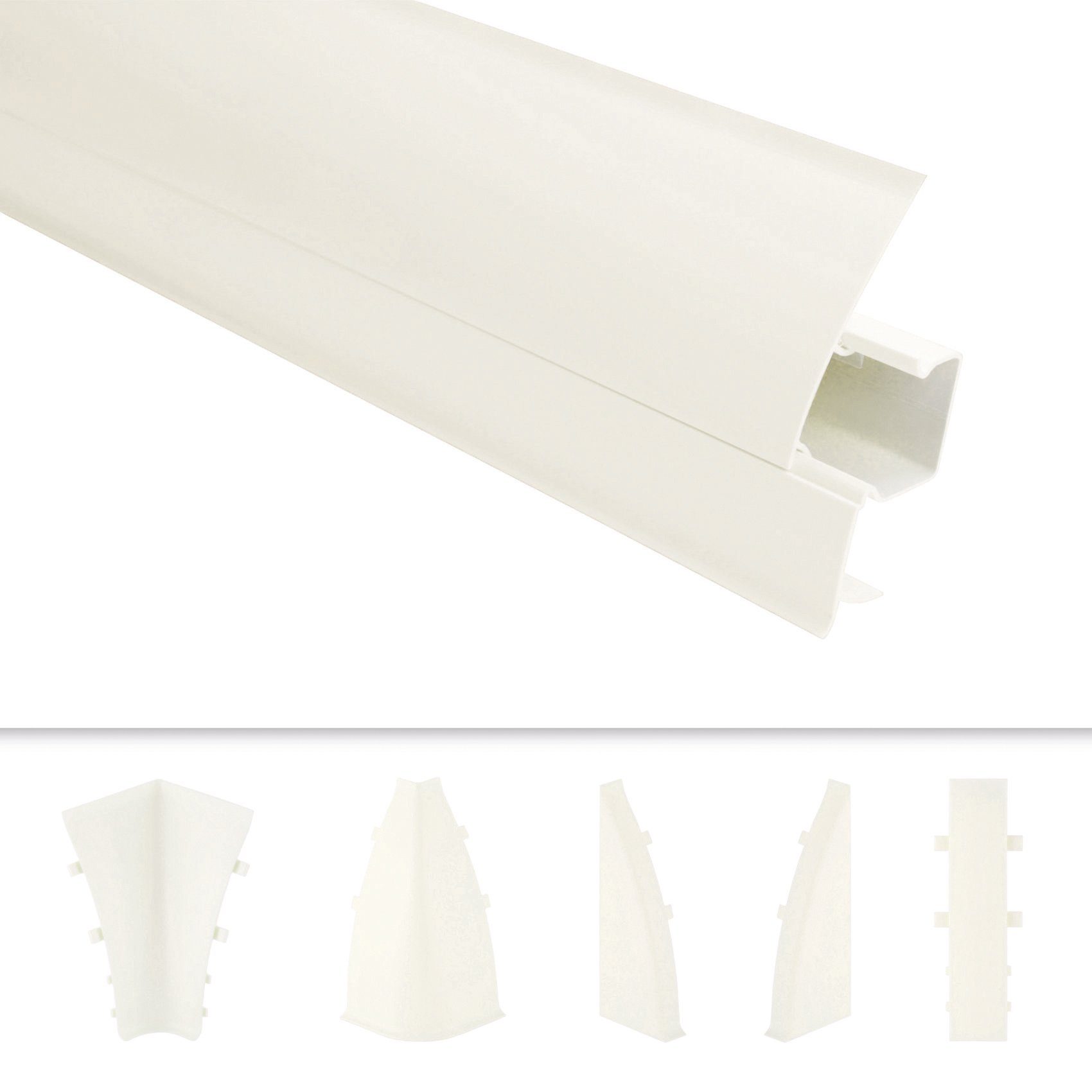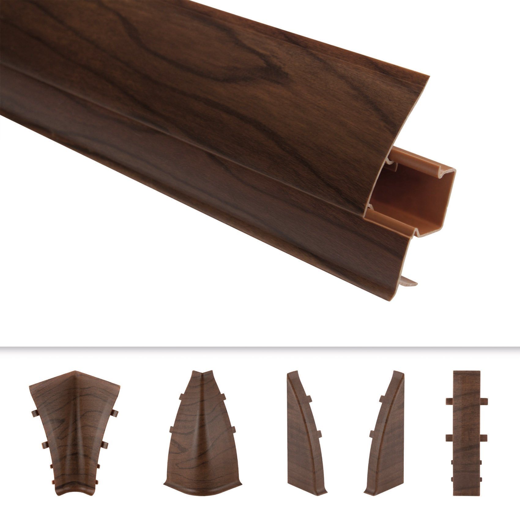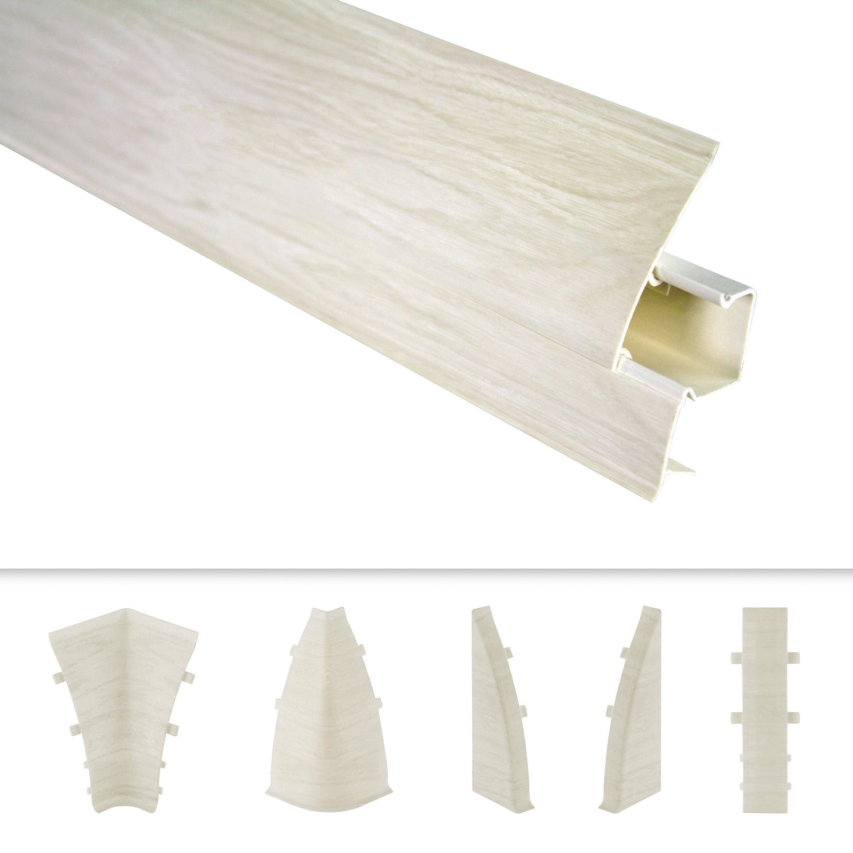 Das moderne Design der Fußleiste passt hervorragend zu jedem Einrichtungsstil. Das Abnehmbare Oberteil erleichtert Maler- und Tapezierarbeiten. Die Gummikante sorgt für einen sauberen Abschluss und der bestehende Kabelkanal kann Kabel aller art verdecken. Das Material zeichnet sich durch seine Härte, Schlag- und Stoßfestigkeit aus. Trotz der robusten Beschaffenheit behält die Leiste ihre Flexibilität und passt sich auch an unebene Flächen an. Unsaubere Tapetenübergänge, Unebenheiten oder Kabel können geschickt kaschiert und ein harmonischer Übergang von Wand zu Boden geschaffen werden. Trotz der Härte lässt sich die Sockelleiste sehr einfach schneiden und verarbeiten. Auch für handwerkliche Laien ist unsere Leiste aufgrund des geringen Gewichts und der unkomplizierten Montage sehr zu empfehlen. Für jede Sockelleiste gibt es passende Außen- und Innenecken, Verbindungsstücke und Endkappen.