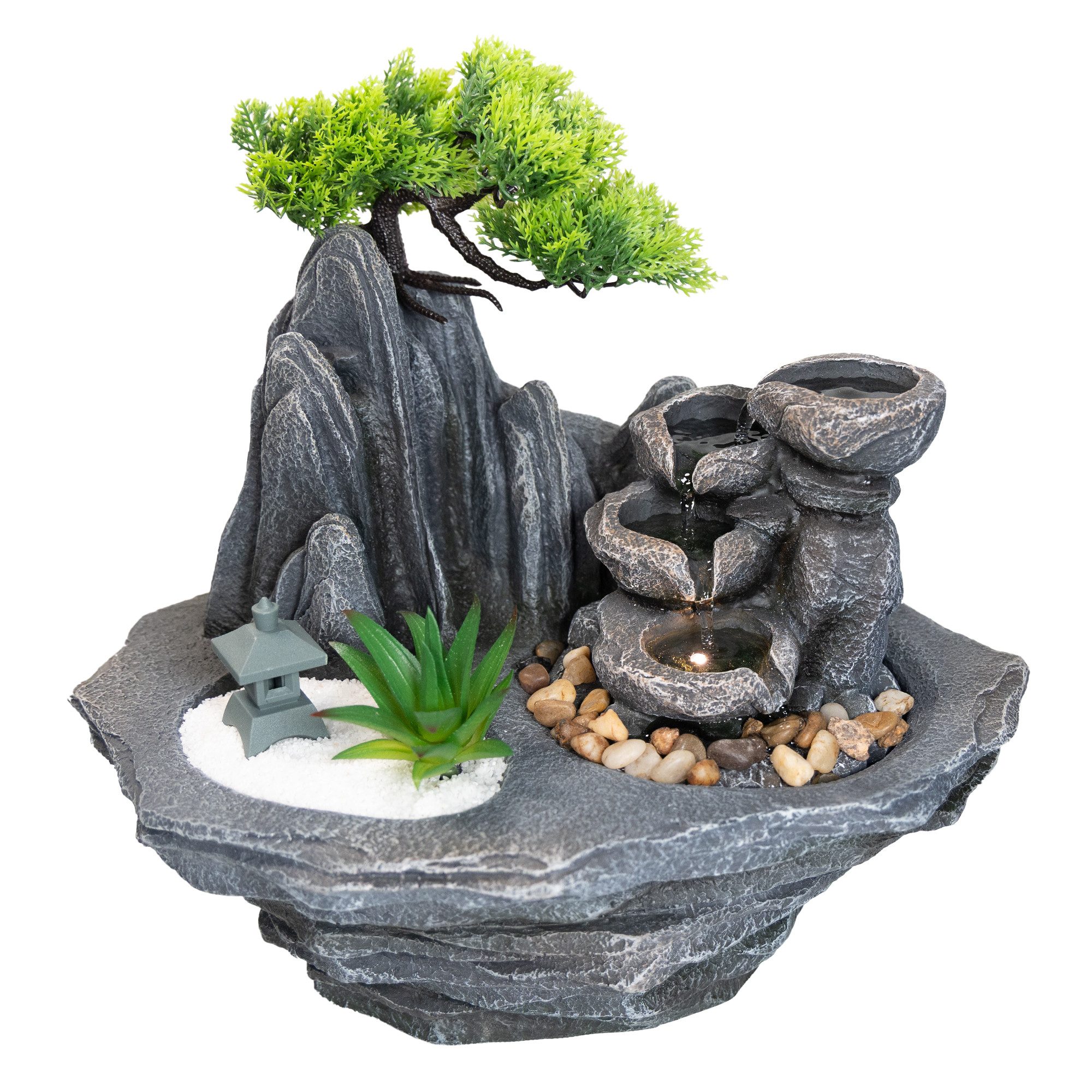 Mit seinem kompakten Format lässt sich der Indoor-Feng-Shui-Brunnen flexibel aufstellen – ob auf dem Schreibtisch, im Eingangsbereich oder auf der Fensterbank. Die moderne LED-Lichtquelle taucht den Kaskadenbrunnen in ein sanftes Licht, das besonders am Abend für stimmungsvolle Akzente sorgt. Durch die natürliche Luftbefeuchtung wird zudem das Raumklima spürbar verbessert – ein echtes Plus in der Heizsaison.