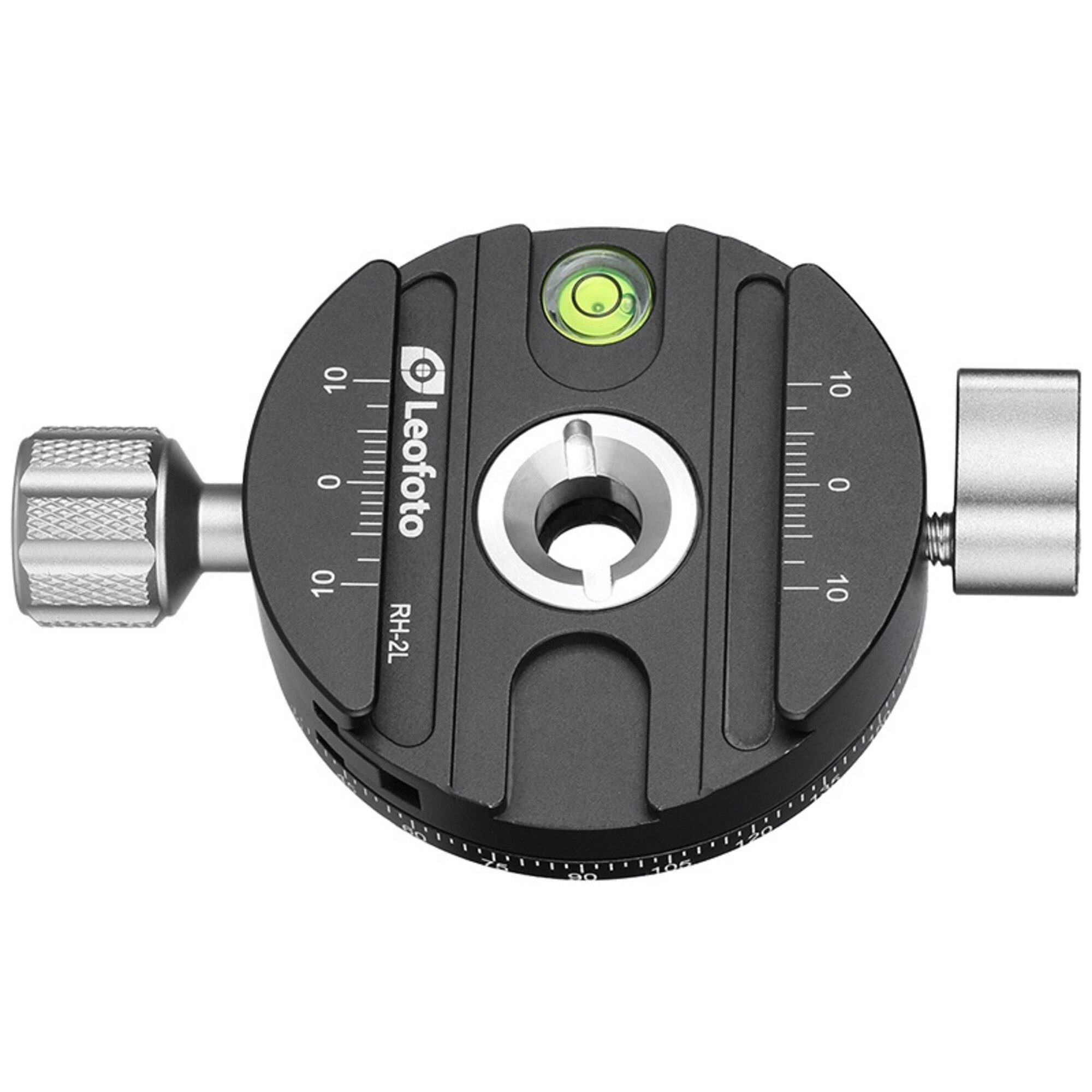 Im Gegensatz zu normalen, Arca-Swiss-kompatiblen Schnellkupplungen macht es die RH-2L möglich, die Kamerapositionen besonders genau zu bestimmen, damit auch Panorama-Schwenks gelingen. Wer letztere zum Ziel hat, kann Leofoto-Stativköpfe ganz einfach mit dieser Panoramaplatte bestücken, indem man die RH-2L ganz einfach gegen die normale Schnellkupplung austauscht. Dank der lasergravierten feinen Skala gelingt genaues Einstellen besonders leicht – und der Schnellspannhebel hält die eingestellte Position exakt fest.