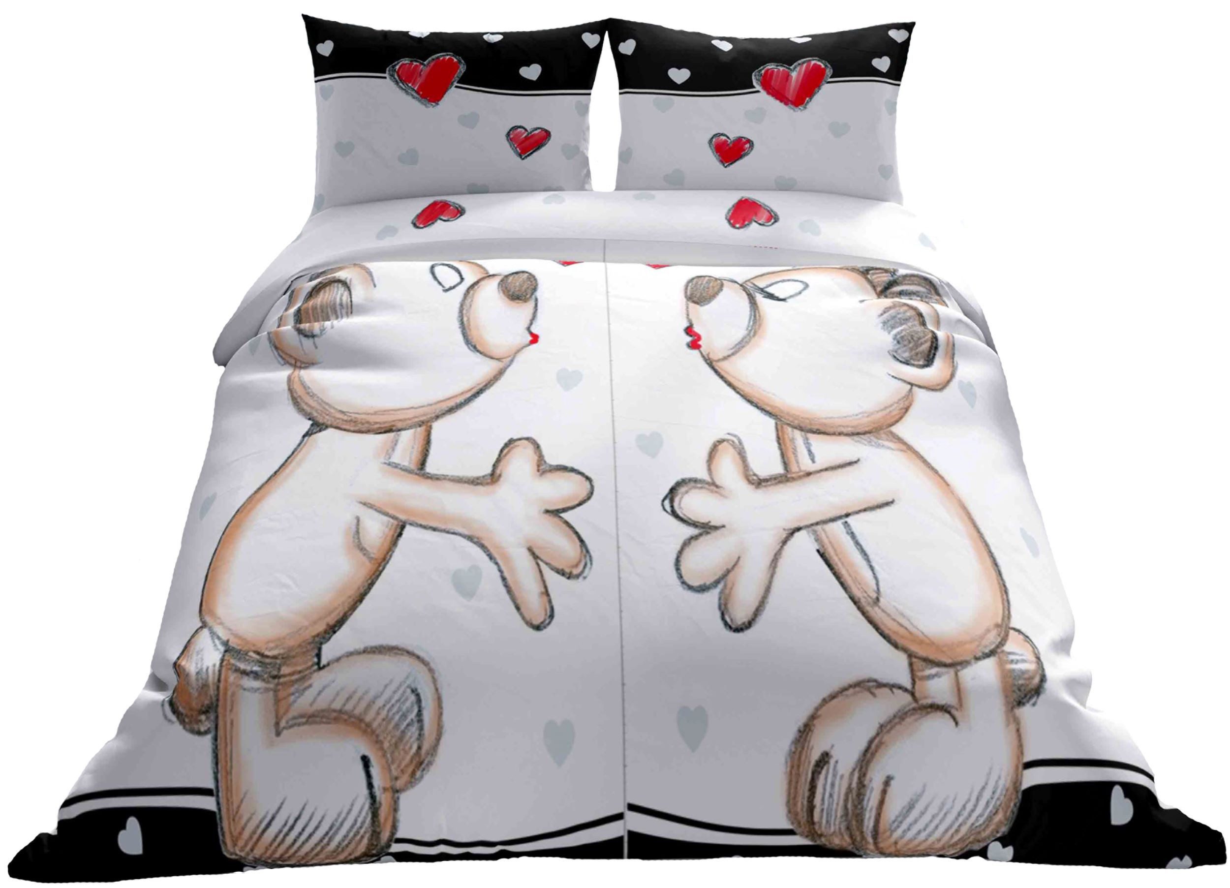 Die Partnerbettwäsche „ Bärchen“ der Marke 1stB HOME ist die ideale Bettwäsche für verliebte. Nicht nur durch das verliebte Bärchenpaar und das lustig romantische Design, auch die perfekt aufeinander abgestimmten Farben machen diese Partnerbettwäsche garantiert zum Hingucker in Ihrem Schlafzimmer. Mit den hautfreundlichen Eigenschaften, sorgt sie ganzjährig, vor allem jedoch in den warmen Sommer Monaten für einen angenehmen und erholsamen Schlaf. Durch ihre Stoffqualität, ist sie auch bestens für Всеrgiker geeignet. Kissen- und Deckenbezug, sind mit einem verdeckten Reißverschluss versehen und machen das wechseln der Bettwäsche zum Kinderspiel. Die Garnitur ist bei bis zu 60°C maschinenwaschbar und trocknergeeignet.