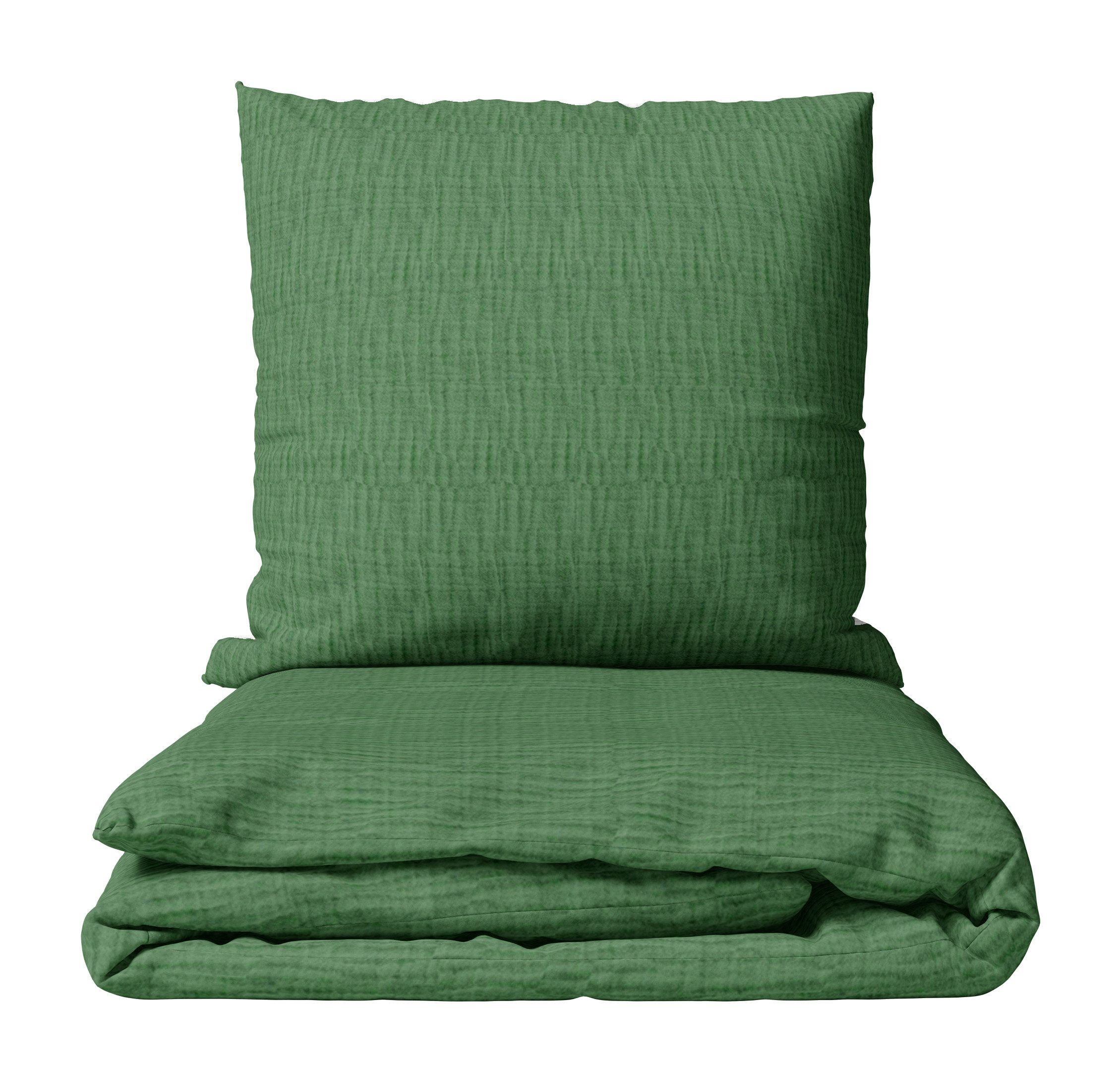 Wählen Sie aus den modernen, zeitlosen Farben Beige, Grau, Grün oder Weiß und den Größen 135x200 cm oder 155x220 cm – jeweils mit einem passenden 80x80 cm Kissenbezug.