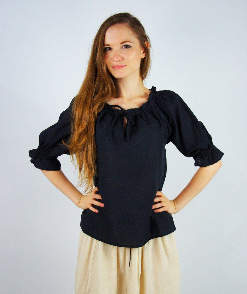 Gefertigt aus leichtem Baumwollstoff ist diese Bluse optimal geeignet für den Sommer. Aufgrund seines zeitlosen Stiles lässt es sich auf Mittelalter- und Larp-Veranstaltungen, sowie im Alltag tragen.