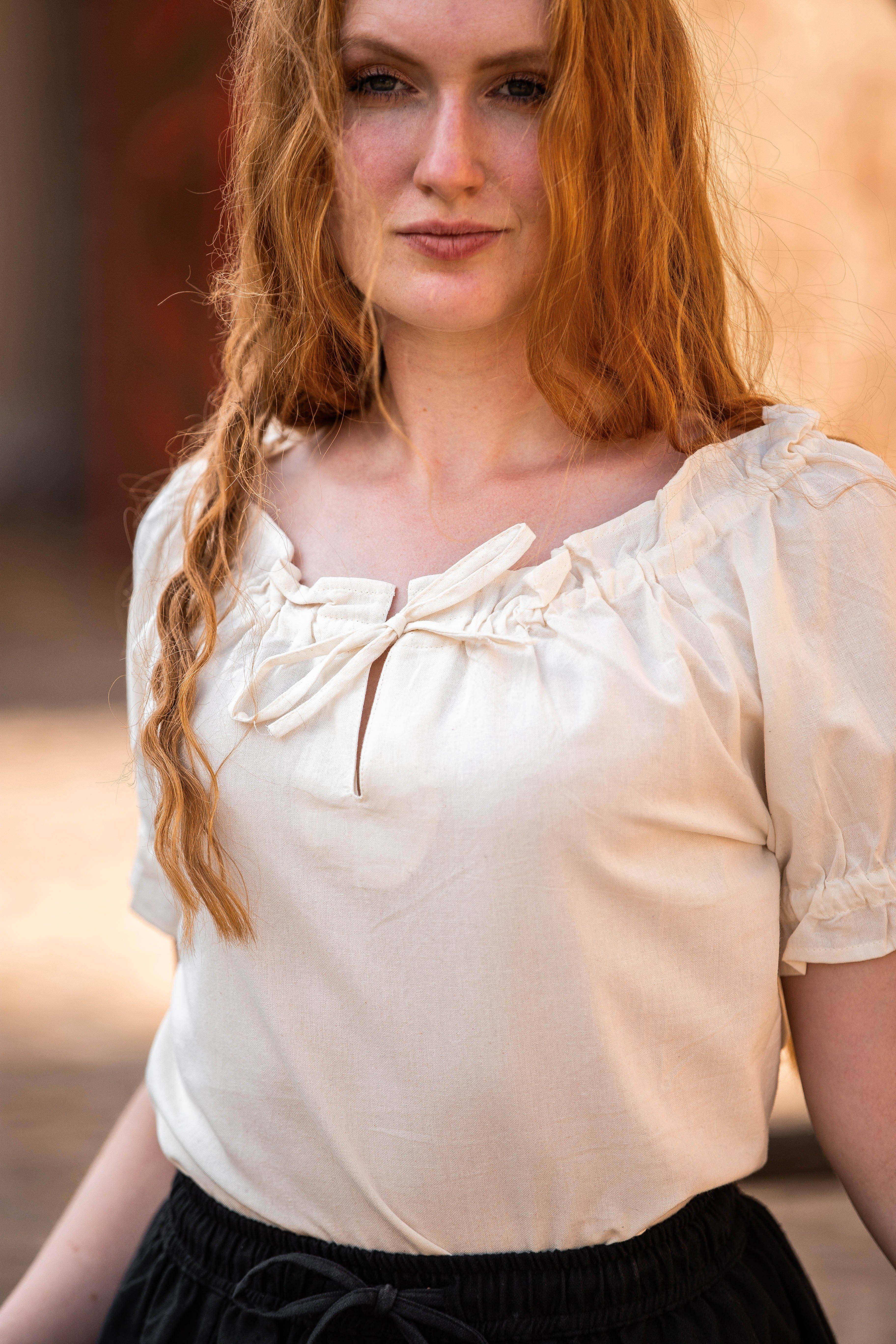 Gefertigt aus leichtem Baumwollstoff ist diese kurzärmlige Bluse das optimale Oberteil für den Sommer. Sie eignet sich sowohl auf Mittelalterlichen Veranstaltungen, sowie im Alltag gleichermaßen und kann nach belieben mit einem mittelalterlichen Rock, oder einer modernen Jeans kombiniert werden.