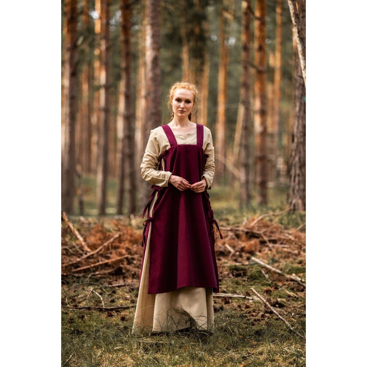 Erscheint zum nächsten Markttag in diesem grundsoliden mittelalterlichen, roten Überkleid. Das Überkleid ist aus 100% Baumwolle geschneidert, mit breiten Trägern, die Euch Halt bieten, und Bändern an den Seiten, welche an seine Körperform angepasst werden können. Dieses mittelalterliche Überkleid ist bei 30 Grad maschinenwaschbar. Mit einem Miedergürtel oder einem schmalen Ledergürtel samt Gürteltasche lässt sich dieses Überkleid großartig ergänzen.