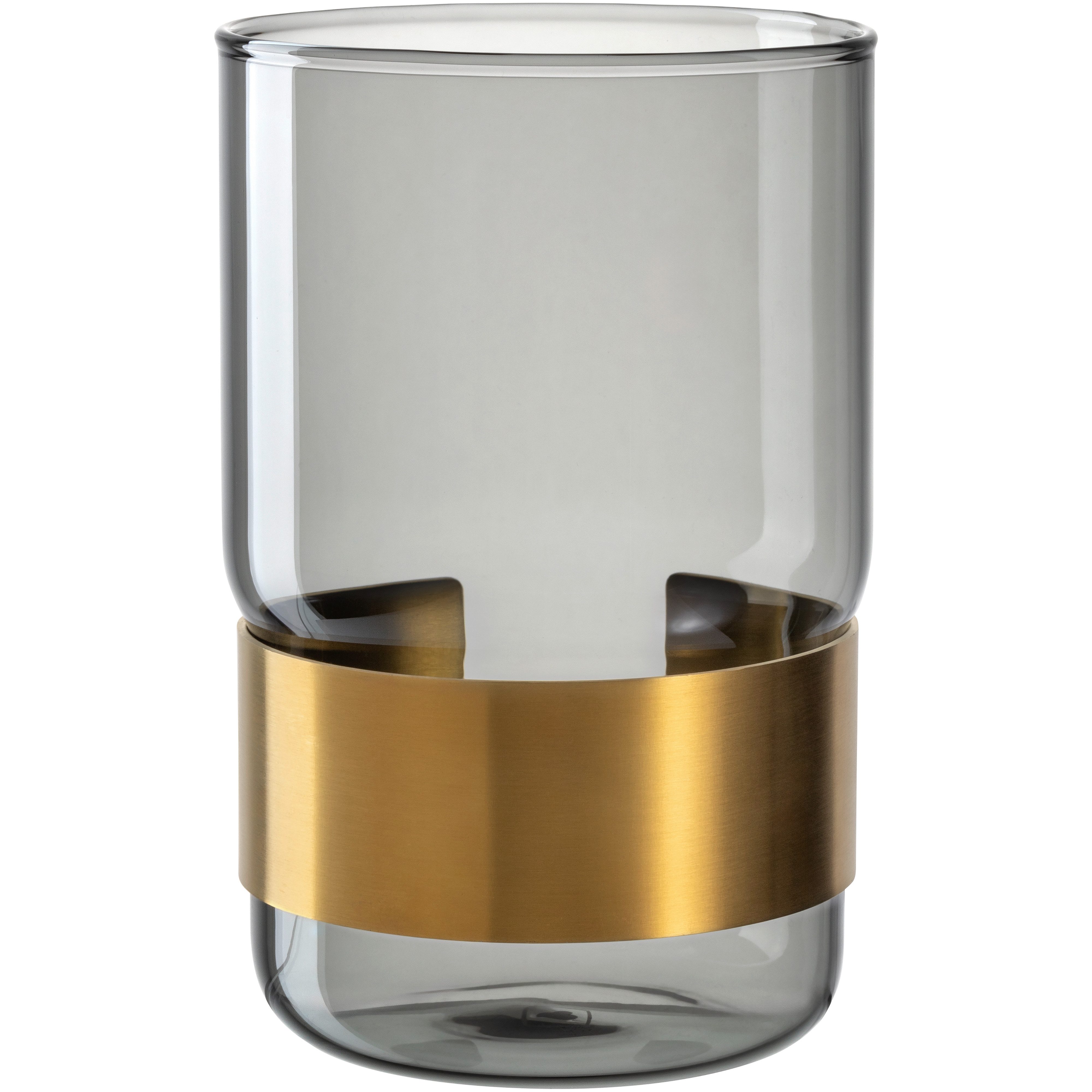Elegante Glasvase in Grau mit goldener Metallspange als stilvolles Wohnaccessoire.
