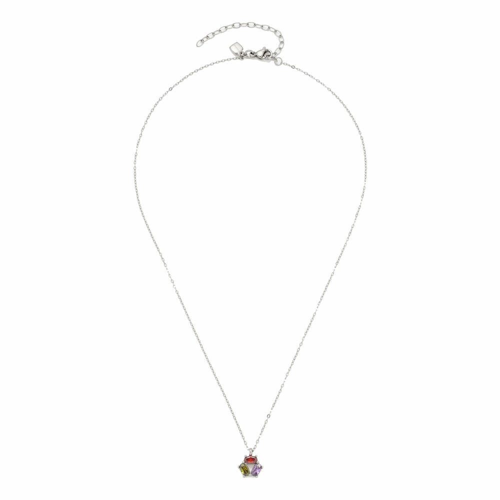 Bringt einen Hauch Farbe in den Mode-Alltag. Die zarte, diamantierte Ankerkette aus Edelstahl lenkt den Blick über ihr kunterbuntes Anhänger-Element. Drei unterschiedlich farbige, oval geformte sowie facettierte Zirkonia-Steinchen werden von einer klassischen Krappenfassung gehalten und sind vor allem auf schlichten, unifarbenen Oberteilen ein echter Hingucker.