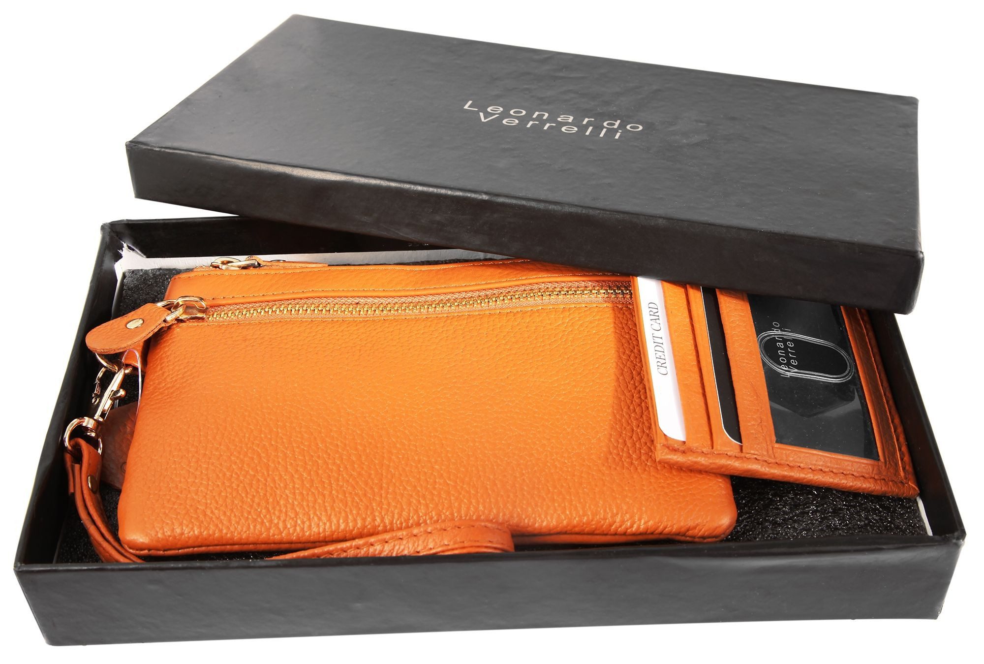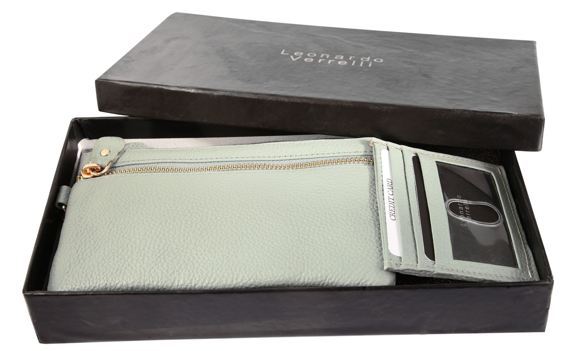 Das zweiteilige Geschenkset der Marke Leonardo Verrelli besteht aus einer kleinen Damenhandtasche und einem Kreditkartenmäppchen aus echtem Leder. Das Set ergibt ein edles Duo, ist im Gebrauch multifunktionell und super praktisch. Die kleine Tasche hat eine Размер von 12 x 19 x 1,5 cm im ungefüllten Zustand und verfügt über zwei Fächer, die sich über einen Reißverschluss öffnen und schließen lassen. Zudem verfügt die Tasche über einen 17 cm langen und abnehmbaren Handtragegriff, dadurch lässt sich die Tasche ideal ausführen - ob zu einem Businesstermin, zum Ausgehen am Abend oder zum Shoppen in der Stadt. Das Kartenmäppchen bietet Platz für sechs Karten mit einem transparenten Fach. Es hat eine Длина von 8,4 cm, eine Breite von 10,0 cm und eine Materialstärke von 1,0 cm. Geliefert in einer edlen Geschenkbox der Marke Leonardo Verrelli ist das Set ideal zum Verschenken oder es eignet sich auch hervorragend für den eigenen Gebrauch. Die Accessoires sind tolle Begleiter und bieten eine ordentliche Aufbewahrung aller wichtigen Habseligkeiten.