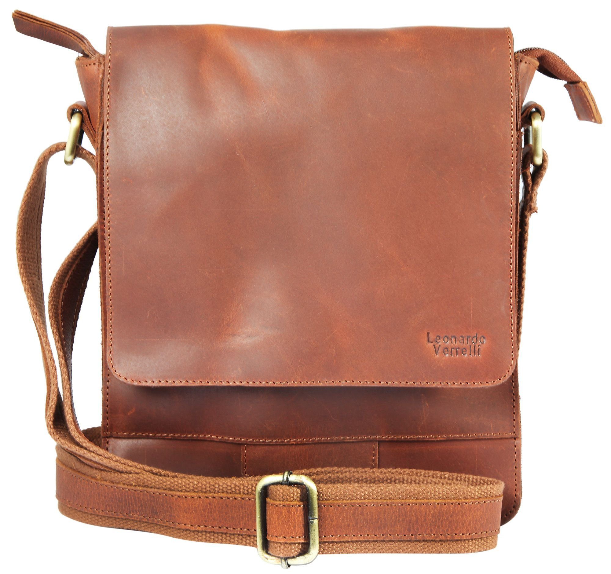 Die Umhängetasche der Marke Leonardo Verrelli ist aus Rindsleder gefertigt und präsentiert sich in schlichter Optik mit gradlinigem Design. Durch eine spezielle Fettung kommt der Glanz des Leders besonders hervor und macht es sehr geschmeidig. Die Tasche ist der perfekte Begleiter für den Alltag, aber auch zum Ausgehen am Abend, denn sie verfügt über sehr viel Stauraum und zahlreiche Fächer. Aufgrund der idealen Размер lässt sie sich perfekt über der Schulter oder Crossbody tragen. Zudem verfügt sie über einen verstellbaren Tragehenkel, der aus einer Kombination aus Stoff und Leder hergestellt wurde und auf eine maximale Gesamtlänge von ca. 150 cm eingestellt werden kann. Das Hauptfach kann mithilfe eines Reißverschlusses geöffnet oder verschlossen werden. Darüber hinaus lässt sich der Inhalt mit dem Druckknopf besetzten Überschlag sichern. Im Inneren befindet sich ein Handy-, sowie zwei Reißverschlussfächer. Впередe Aufbewahrungsmöglichkeit bieten die beiden Fächer auf Vorder- und Rückseite. Die stilsichere Tasche ist ein zeitloser Allrounder, der sich zu vielen Gelegenheiten ausführen lässt. Zusätzlich überzeugt hier nicht nur das Design, sondern die Möglichkeit der Aufbewahrung aller wichtigen Gegenstände. Ob für einen gemütlichen Spaziergang, zum Einkaufen oder einen Ausflug - mit dieser Handtasche erhalten Sie einen idealen Gefährten aus natürlichen und langlebigen Materialien. Die Размер der Tasche ergibt sich im ungefüllten Zustand aus einer Длина von 26,5 cm, einer Breite von 22 cm und einer Materialstärke von 7 cm.