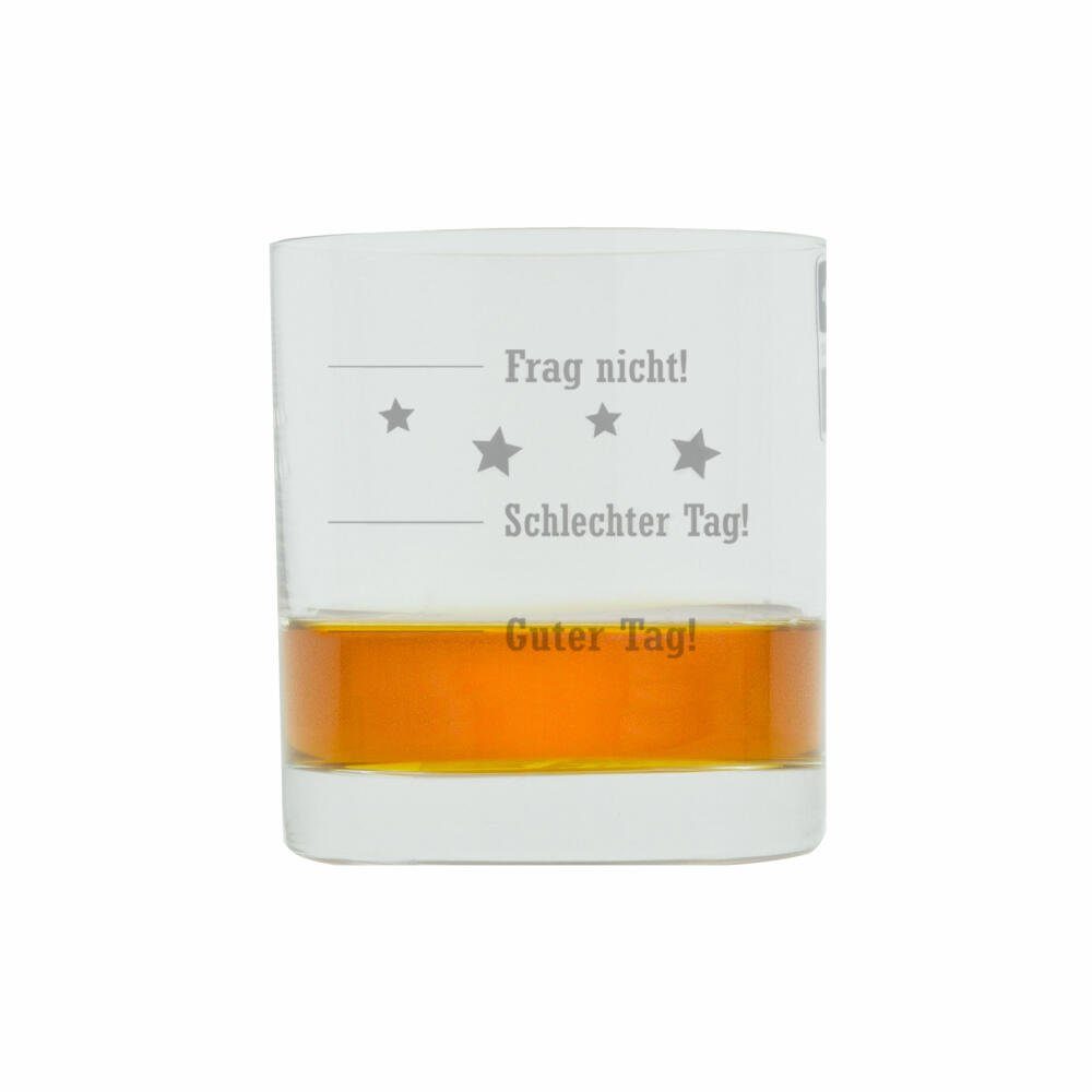Lieferumfang | 1 Leonardo Whiskybecher, Guter Tag!, Schlechter Tag!, Frag Nicht!, Tumbler, Geschenk Stimmungsglas mit lustiger Gravur, Glas, 220 ml |