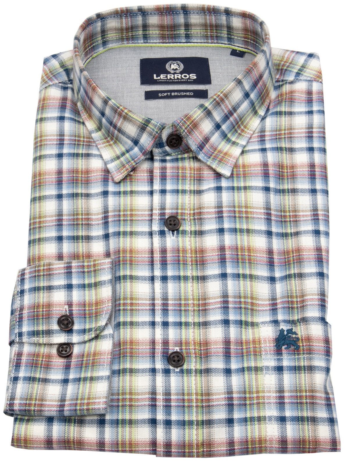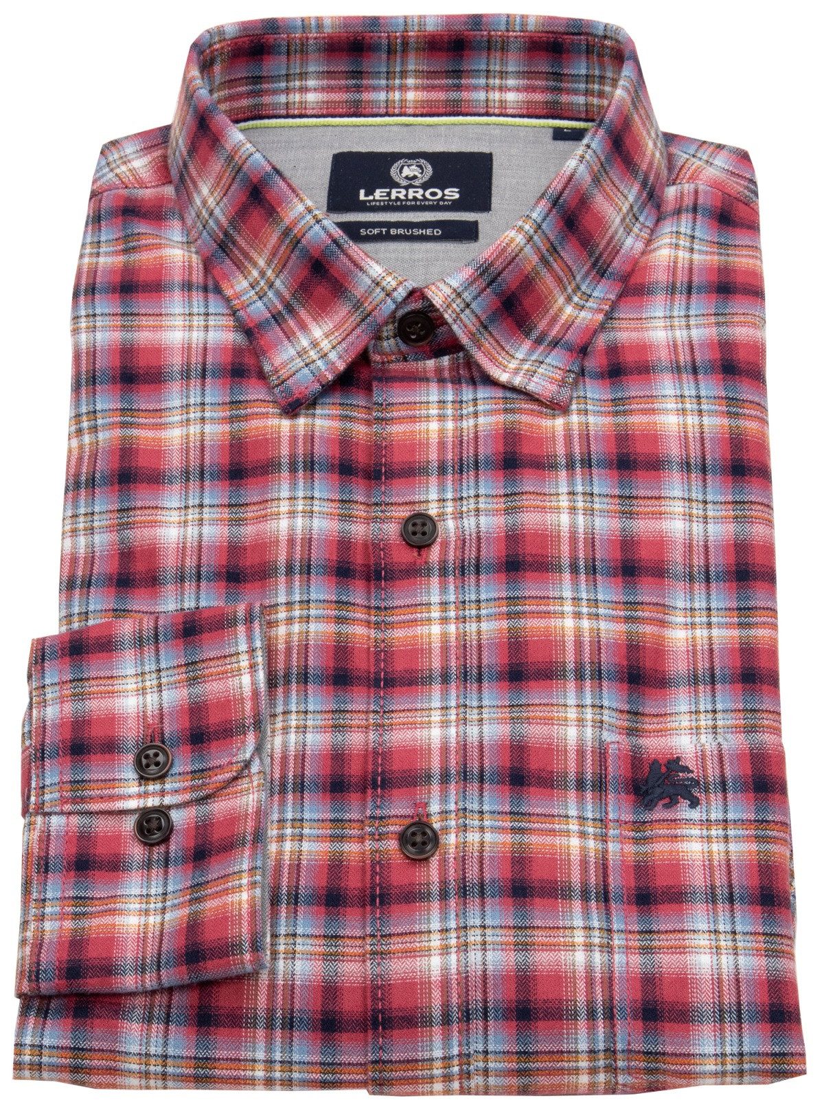 Die hochwertige Fischgratqualität mit modischem Karomuster und die leicht gebürstete, weiche Haptik machen dieses LERROS Langarmhemd zum Style FOR EVERY DAY. Die 2-Knopf-Manschetten, die aufgesetzte Brusttasche und der sportive Button-Down-Kragen mit verdeckten Knöpfen verleihen diesem Karohemd den lässigen Tragekomfort.