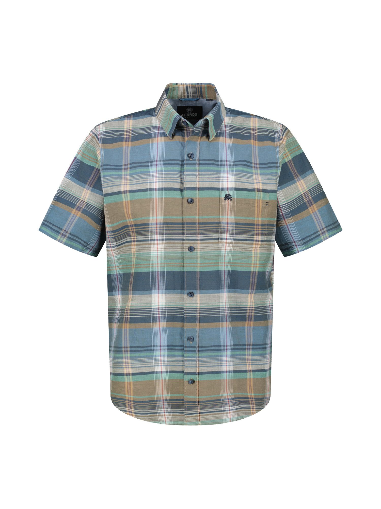 Sommerliches Herren Kurzarmhemd von LERROS in weicher Strukturqualität mit gewebtem Karomuster, verdecktem Button-Down-Kragen und aufgesetzter Brusttasche. Ein lässiger Hemdenstyle FOR EVERY DAY!