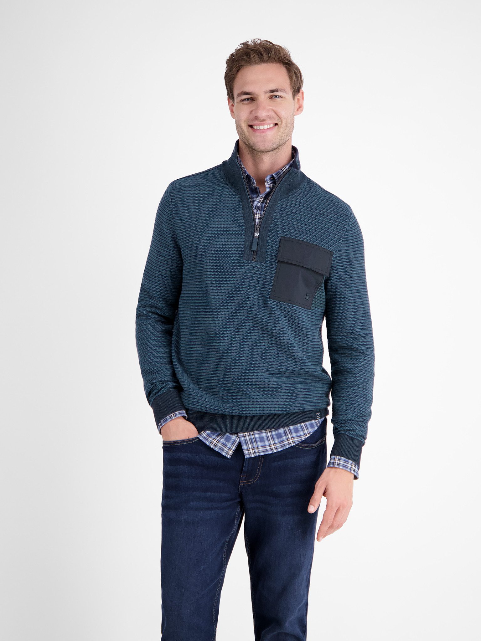 Der Troyer von LERROS wird dein neues Feel-good-Oberteil für zu Hause und an kalten Tagen. Mit dem Aufnäher und dem Markenlabel sieht er individuell und sportlich aus. Der Stehkragen steht nach oben und liegt am Hals an, wodurch du legere Freizeit-Outfits kombinieren kannst. Die langen Ärmel enden in einem Bündchen, das für guten Sitz sorgt. Dieser Pullover hat einen Rundhalsausschnitt und ist hüftbedeckend sowie.