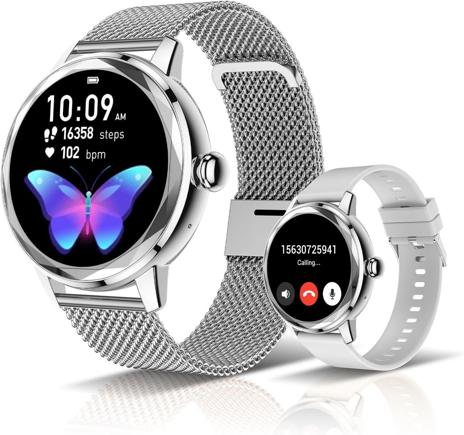 Zusatzfunktionen | Smartwatch Damen mit Telefonfunktion Elegante Smartwatch Damen Fitness Sportuhr Damen mit Schrittzähler Smartwatch Damen mit Pulsmesser Damen Uhr mit Zyklustracking Smartwatch Damen mit Schlafanalyse Fitnessuhr Damen mit Sportmodi Wasserdichte Smartwatch für Damen Smartwatch Damen mit großem Display Gesundheitsuhr Damen mit SpO2 Smartwatch Damen mit wechselbarem Armband Multifunktionale Damen Smartwatch Damen Smartwatch mit Benachrichtigungen Smartwatch Damen mit Musiksteuerung Fitness Smartwatch Damen Alltag |