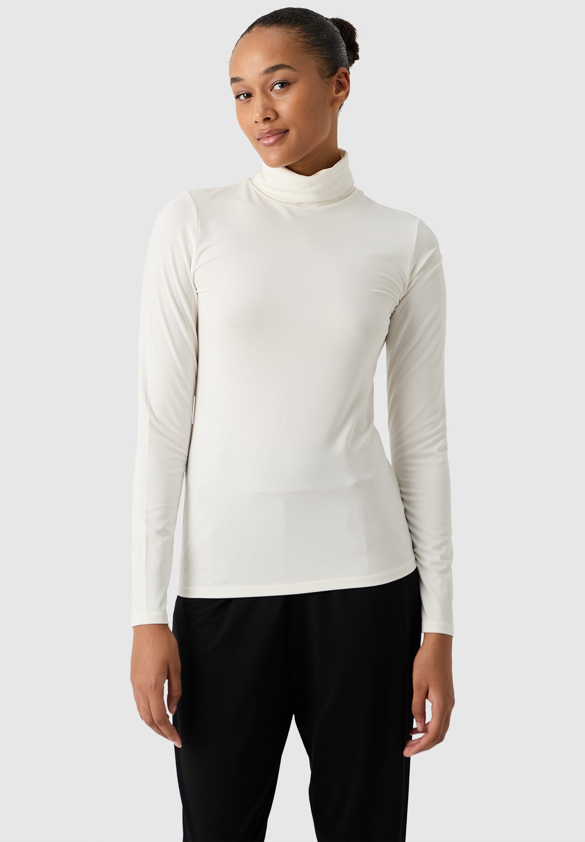 Das Yunaa Longsleeve – Dein neues Must-have für mühelosen Stil und Komfort! Dieses enganliegende Longsleeve ist aus weichem, atmungsaktivem Viskose-Jersey (Bambus) gefertigt und vereint Eleganz mit Lässigkeit. Der stilvolle Rollkragen, die langen Ärmel und die reguläre Длина machen es zu einem vielseitigen Kleidungsstück, das sich perfekt an deine Silhouette anschmiegt.