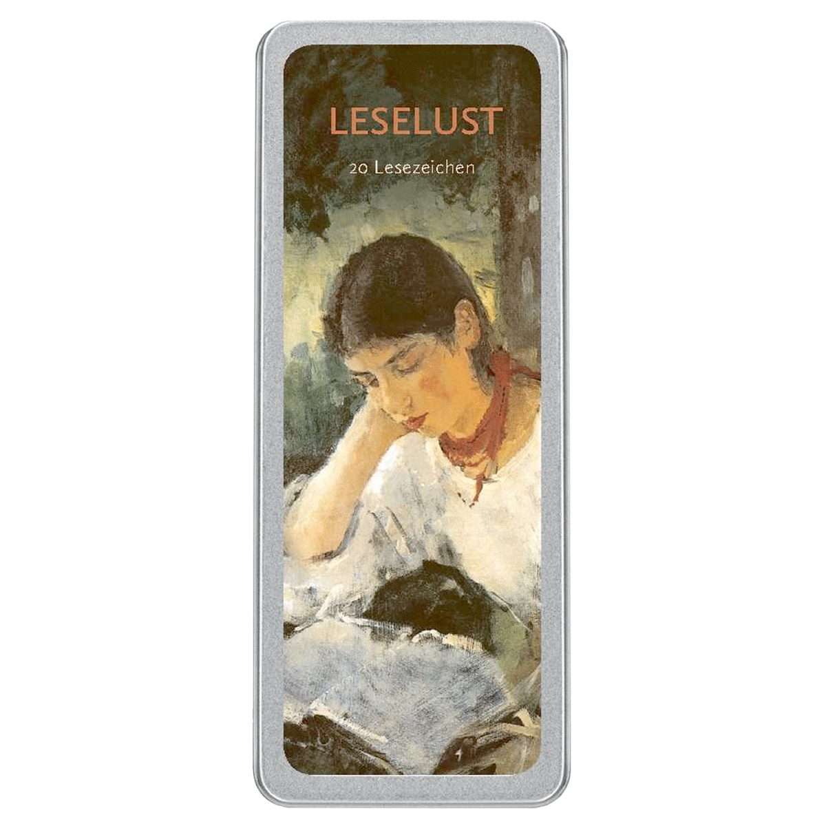 Gibt es ein schöneres Geschenk für Bücherfreunde und Leseratten 20 Lesezeichen mit den schönsten Bildern lesender Frauen und Mädchen, gut geschützt in einer schönen Metallbox.