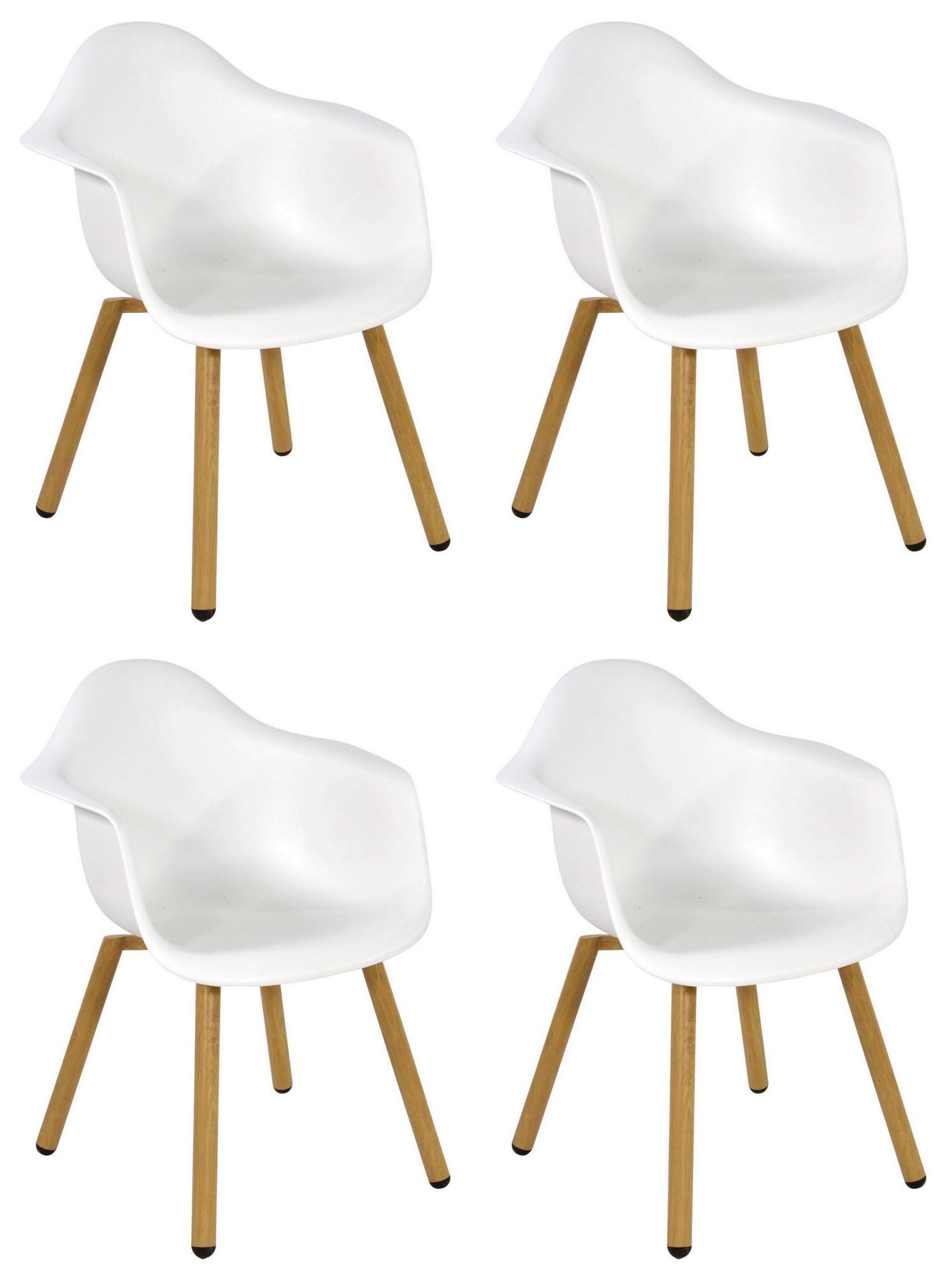 Der Design-Stuhl MONTREUX von Lesli Living, hier im praktischen 4er-Set, verkörpert modernes Design gepaart mit funktionaler Robustheit, ideal für den Einsatz im Außenbereich. Dieser Stuhl zeichnet sich durch seine Sitzfläche aus hochwertigem Polypropylen in Weiß aus, die nicht nur optisch ansprechend, sondern auch äußerst strapazierfähig und pflegeleicht ist. Die Füße aus Stahl in Holzoptik bieten eine solide Basis und ergänzen das zeitgenössische Gesamtbild durch ihre edle Optik und Stabilität. Mit einer komfortablen Sitzhöhe von ca. 45 cm und einer Armlehnenhöhe von ca. 69 cm kombiniert dieser Stuhl optimalen Sitzkomfort mit moderner Ästhetik und ist somit eine stilvolle Bereicherung für jeden Garten oder jede Terrasse. Der Lesli Living Design-Stuhl MONTREUX im 4er-Set ist die ideale Wahl für alle, die Wert auf Design, Komfort und Haltbarkeit legen. Ideal für die Ausstattung moderner Außenbereiche, bietet er eine perfekte Kombination aus Stil und Funktionalität. Kaufen Sie jetzt und bereichern Sie Ihren Garten oder Ihre Terrasse mit diesen eleganten und komfortablen Stühlen.