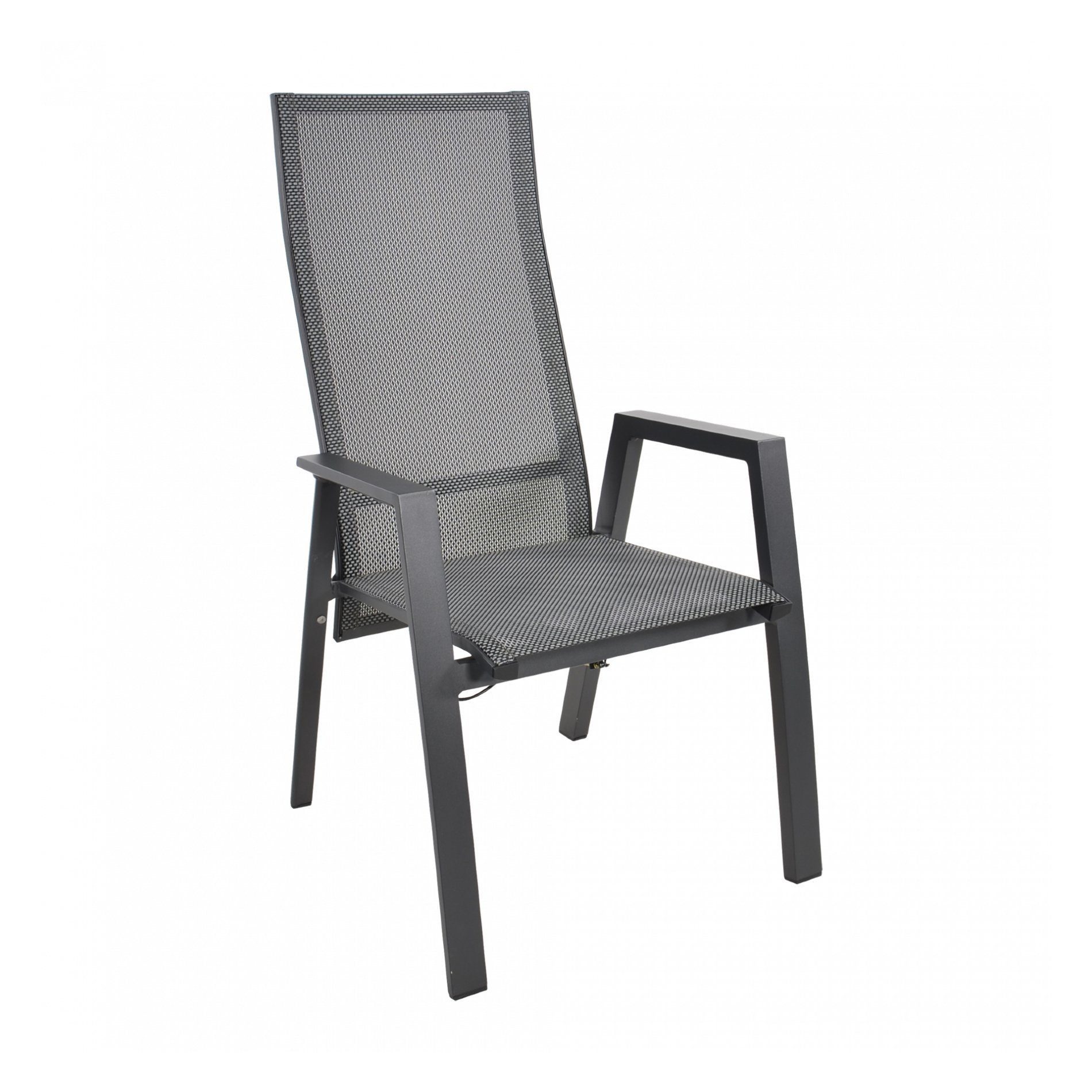 Der Gartenstuhl “Amir” von Lesli Living mit hoher, verstellbarer Rückenlehne lässt sich durch sein klassisches Design in jedes Gartenambiente integrieren. Er überzeugt durch Design, erstklassige Materialverarbeitung und Langlebigkeit. Durch die Verstellmöglichkeiten ist der Sessel super komfortabel. Der Hochlehner besitzt ein Gestell sowie Armlehnen aus pulverbeschichtetem Aluminium in der Farbe Charcoal (Anthrazit). Die Sitz- und Rückenfläche verfügt über eine Bespannung aus hochwertigem Textilen in der Farbe schwarz/grau. Es ist wetterfest, reißfest und bleibt auch bei großer Beanspruchung formstabil.