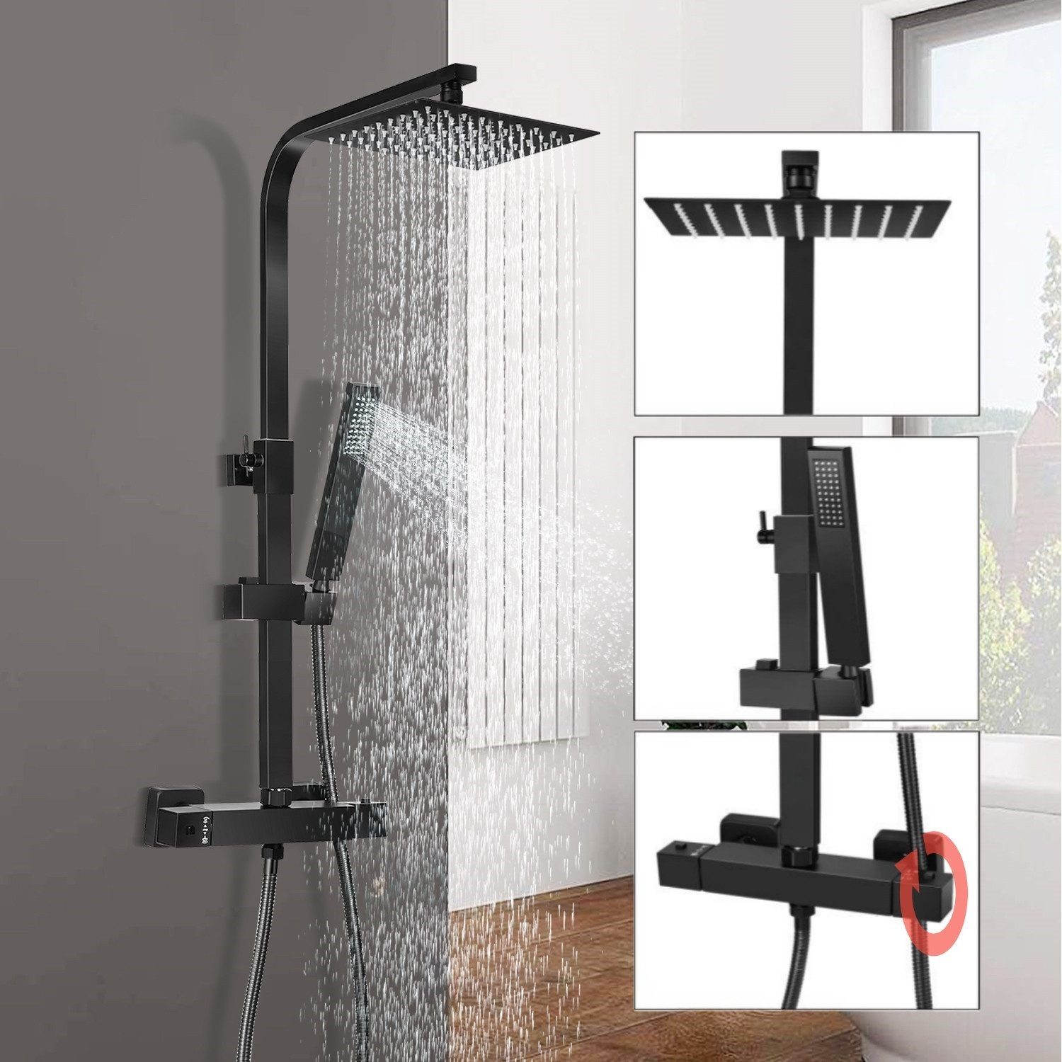 Lieferumfang | Thermostatarmatur x 1 Duschrohrhalterung x 1 Handbrausehalterung x 1 Kopfbrause x 1 Handbrause x 1 Duschschlauch x 1 Installationsschraubenpaket x 1 Montageanleitung x 1 7-Form Duschstange x 1 |