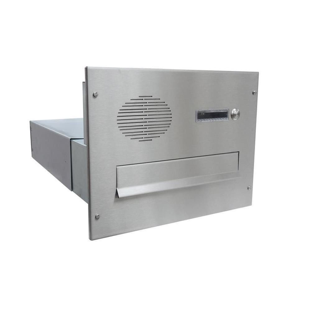 Der B-042 Durchwurfbriefkasten mit Sprechsieb aus Edelstahl besticht durch seine elegante Optik, großzügigen Stauraum und einfache Montage. Das waagerecht angelegte Mauerloch erleichtert die Installation im Vergleich zu schrägen Briefkästen erheblich. Dank der robusten Bauweise aus verzinktem und pulverbeschichtetem Stahlblech sowie der V2A Edelstahl-Frontplatte und Entnahmetür ist dieser Briefkasten besonders langlebig.