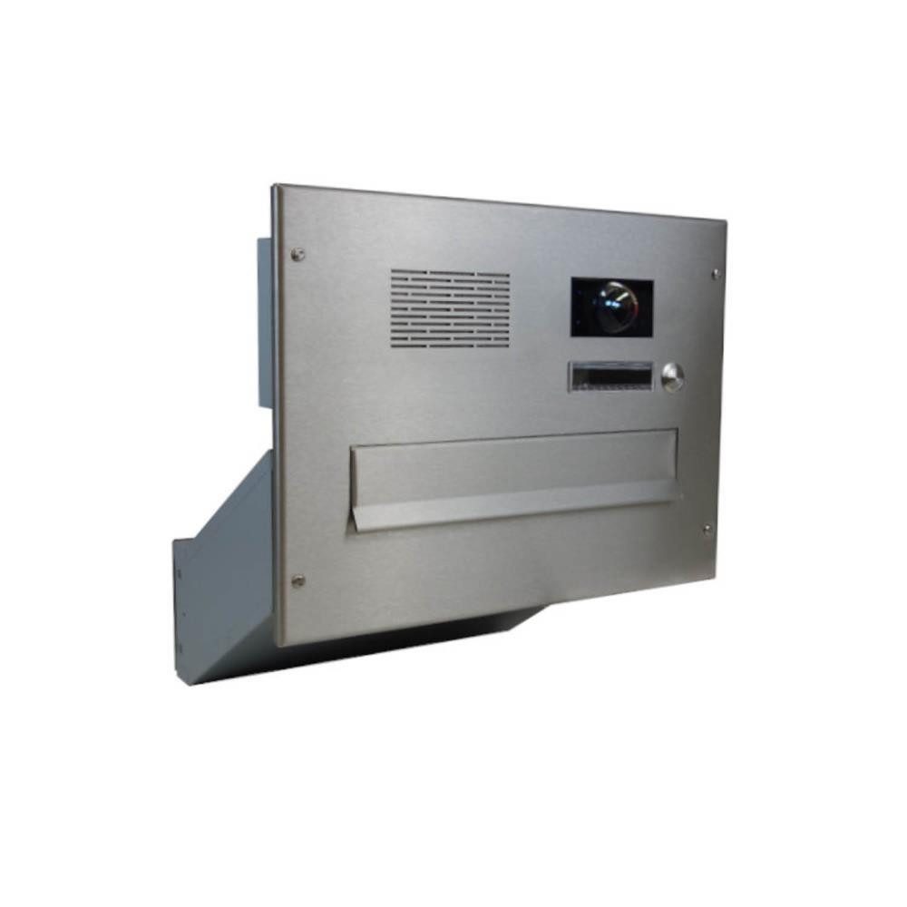 Nicht jeder besitzt eine starke und tiefe Mauer, aber auf die Vorteile eines Mauerdurchwurfbriefkastens muss niemand verzichten. Der Durchwurfbriefkasten in Edelstahl mit Kamera D-041 bietet durch seine schräge Form ein größeres Volumen als ein gerader Kasten in dieser Mauerstärke. Dank der diagonalen Bauart gleitet die Post bis zur Entnahmetür, sodass sie beim Öffnen der Tür sofort griffbereit ist. Das mühsame Herausangeln der Post entfällt.