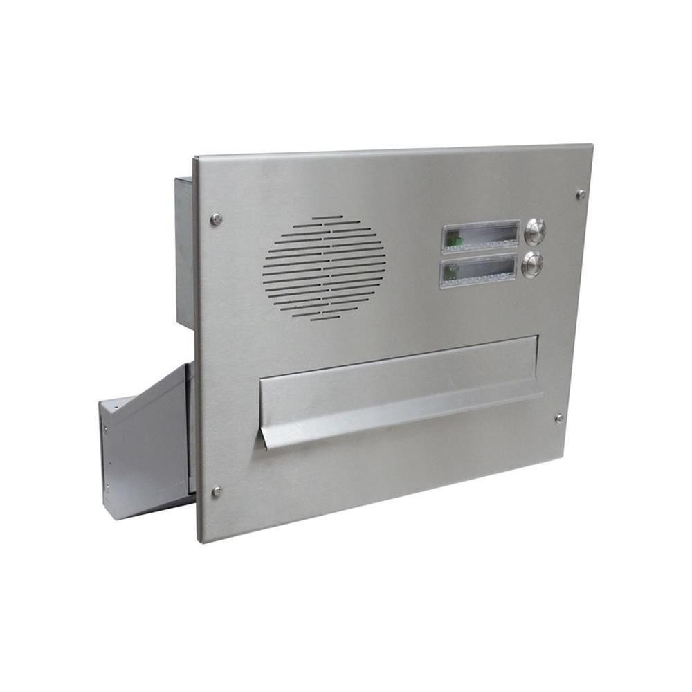 Der D-041 Durchwurfbriefkasten in Edelstahl mit Klingel und Sprechsieb ist die ideale Lösung für schmale Mauern. Dank seiner diagonalen Form bietet er mehr Volumen als herkömmliche Briefkästen gleicher Mauerstärke. Die schräge Bauweise ermöglicht ein reibungsloses Durchgleiten der Post bis zur Entnahmetür, sodass Ihre Post sofort griffbereit ist.