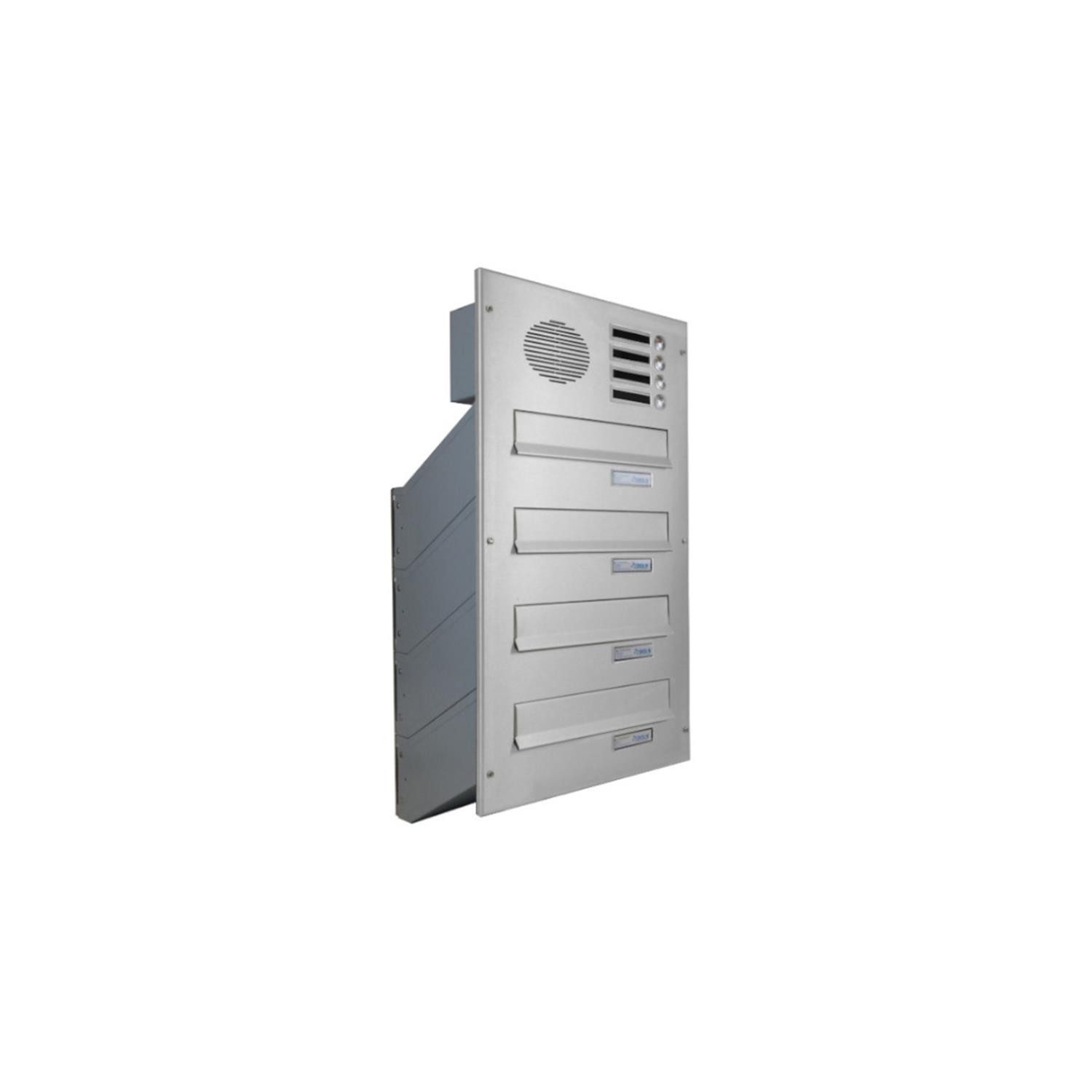 Der D-041 Durchwurfbriefkasten in Edelstahl mit Klingel und Sprechsieb ist die ideale Lösung für schmale Mauern. Dank seiner diagonalen Form bietet er mehr Volumen als herkömmliche Briefkästen gleicher Mauerstärke. Die schräge Bauweise ermöglicht ein reibungsloses Durchgleiten der Post bis zur Entnahmetür, sodass Ihre Post sofort griffbereit ist.