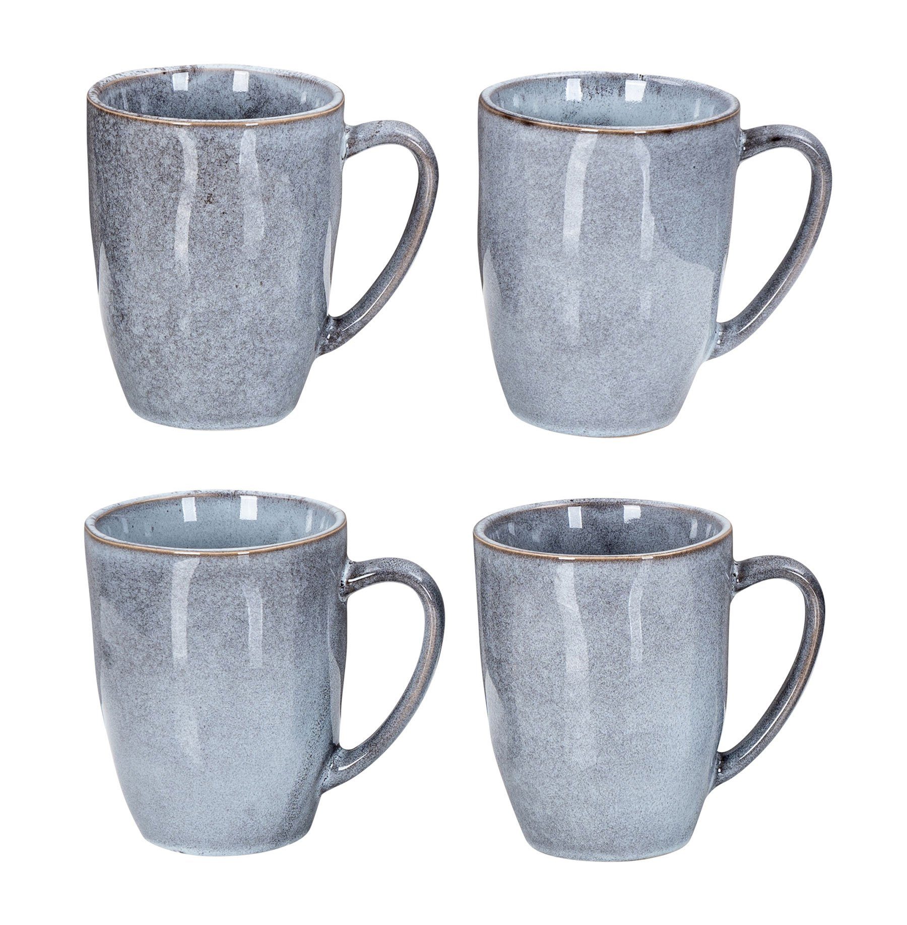 - Material der Tassen: Steingut - Farbe der Gefäße: Blau, grau - Fassungsvermögen je Tasse: ca. 350 ml - Maße der Becher B x H x T: je ca. 9 x 9 x 9 cm - Mit Henkel - geeignet für Spülmaschine und Mikrowelle - Sie erhalten das abgebildete 4er Set Kaffeebecher in der Farbe Blau (ohne Deko)