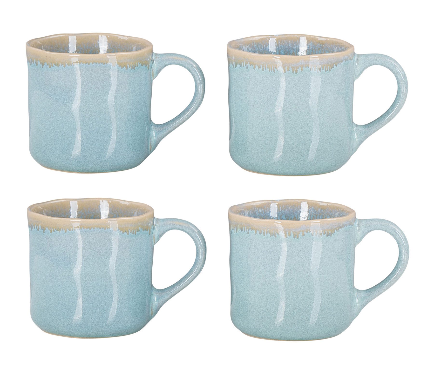 Die stilvollen Kaffeebecher aus Steingut sind für den täglichen Gebrauch geeignet. Das moderne Geschirr fasst heiße und kalte Getränke bis 350 ml. Außerdem sind die robusten Becher aus Steingut ein absoluter Blickfang auf jedem gedeckten Tisch und verleihen Anlässen mit ihrer blauen Farbe eine rustikale Note. Durch eine besondere Lackierung sind die Becher nicht nur glänzend, sondern auch spülmaschinenfest. Für eine besondere Langlebigkeit empfehlen wir den Abwasch per Hand.