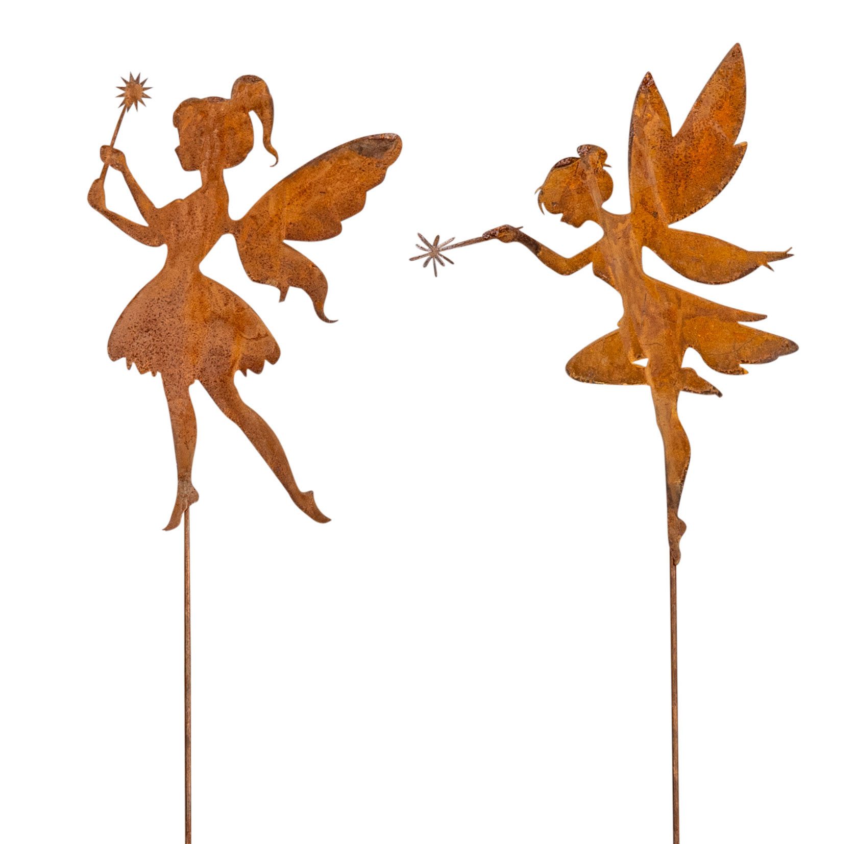 Levandeo® Gartenstecker 2er Set Gartenstecker H80cm Elfe Rostdeko Fee Gartendeko Edelrost