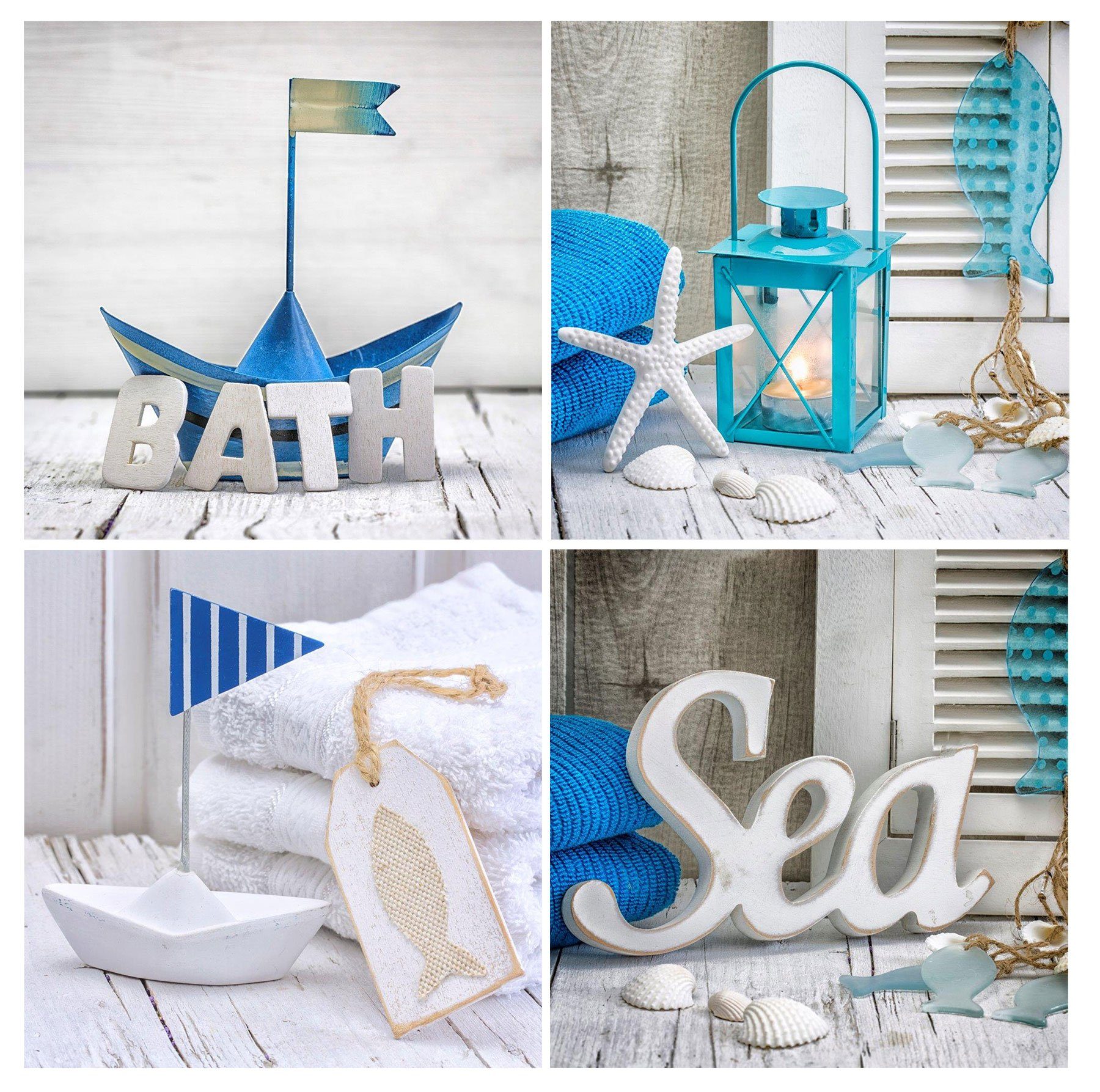 - Gesamtgröße der Glasbilder B x H x T: je 30 x 30 x 1,5 cm - Material der Wandbilder: hochwertiges Sicherheitsglas - Materialstärke der Bilder: ca.0,5cm - Bereits montierte Metall-Aufhängung und Abstandshalter zur sofortigen Montage - Motiv der Wanddekoration: maritime Motive zur Dekoration deines Badezimmers oder deiner Wellnessoase - Sie erhalten die abgebildeten Glasbilder im 4er Set