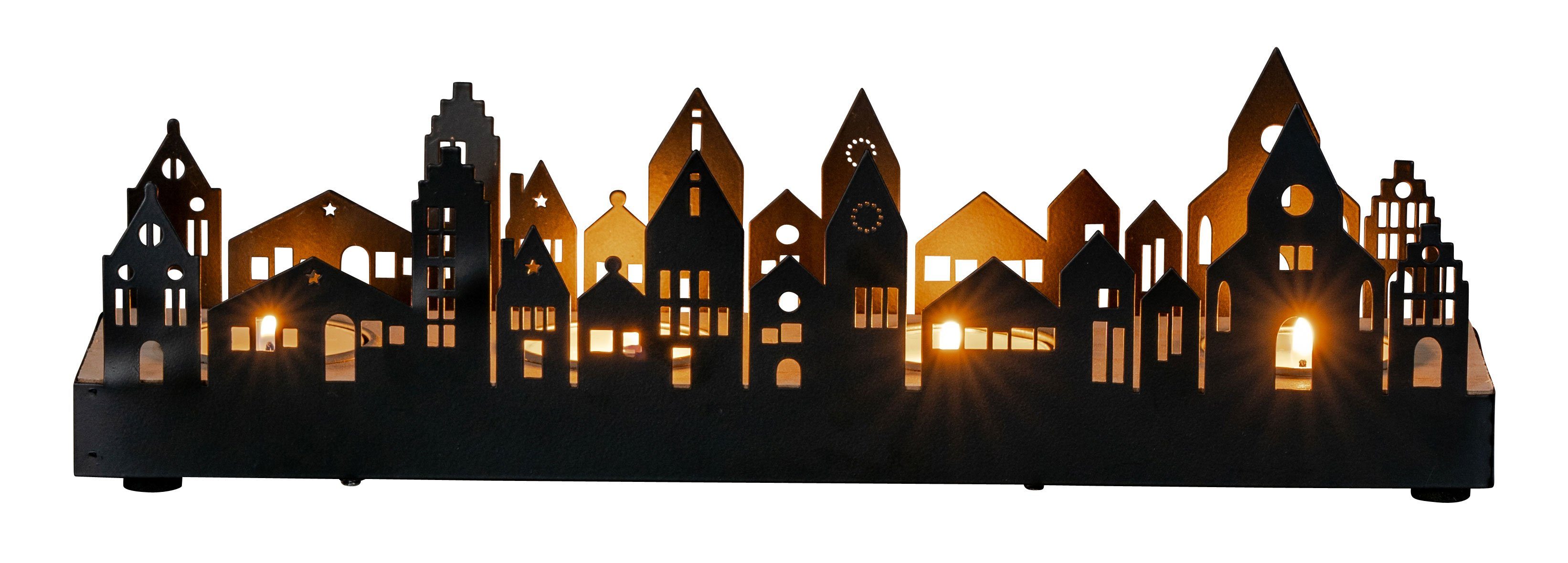 - Material der Teelichthalter: Aus Metall und MDF Holz - Farbe der Kerzendeko : Weiß - Eingelassene Halter für insgesamt 4 Teelichter (nicht enthalten) - Motiv vom Kerzenhalter: Silhouette einer (Alt-)Stadt, Häuser - Maße von der Tischdeko B x H x T: ca. 19 x 8 x 8 cm - Keine Kratzer! An der Unterseite sind bereits Filzgleiter zum Schutze der Möbel befestigt - Sie erhalten die abgebildete Kerzen-Dekoration (ohne Deko und Kerzen)