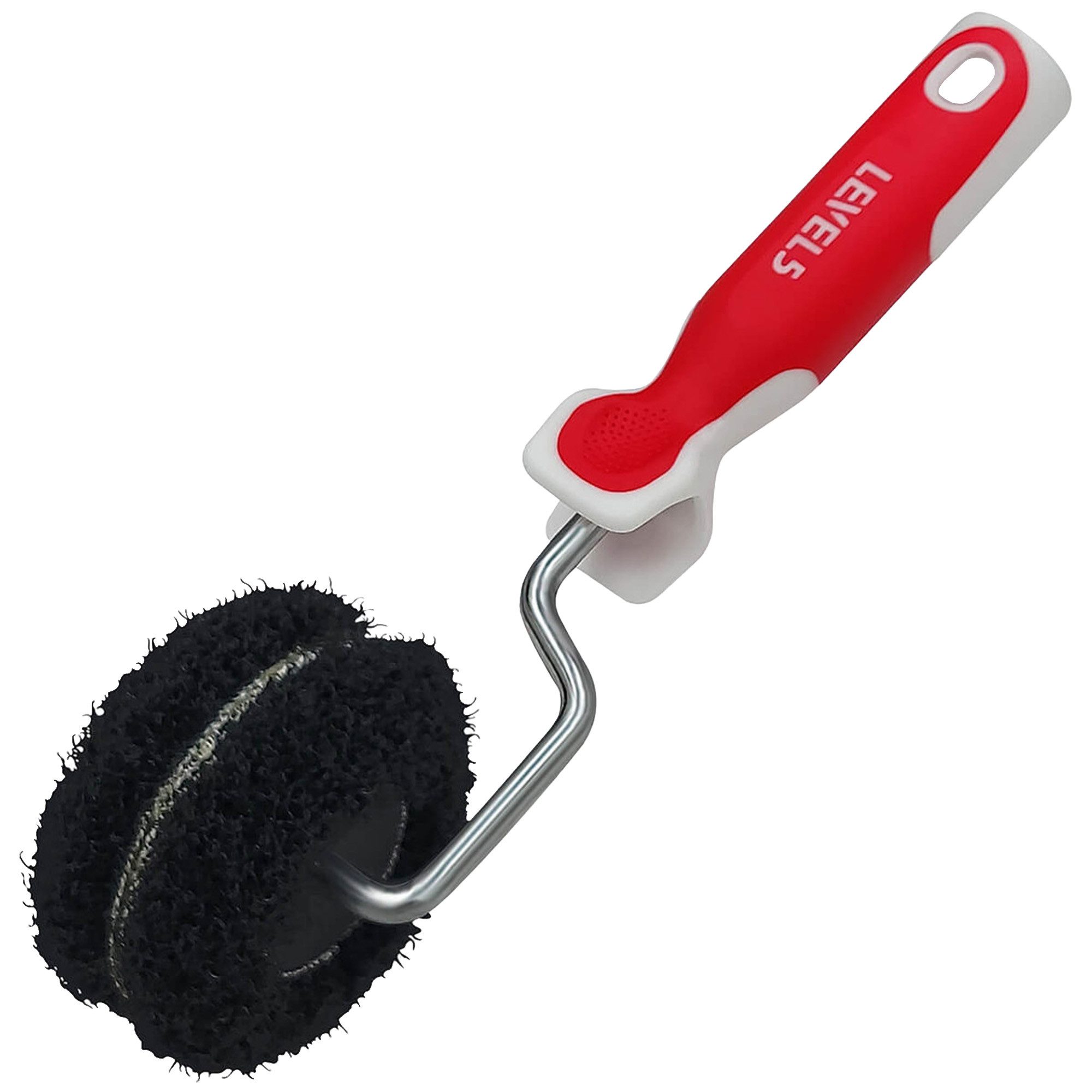 Die LEVEL5 2"-Eck-Trockenbau-Spachtelwalze mit Rahmen wurde für den professionellen Einsatz entwickelt. Ausgestattet mit einem einzigartigen ½-Zoll dicken, netzartigen Polypropylen-Noppen, bieten diese Spezialwalzen eine 50% höhere Spachtel-Haltekapazität im Vergleich zu anderen Alternativen mit hohem Noppenwert. Die innovative Noppe gibt die Spachtelmasse gleichmäßig an die Wand ab, was den Abziehvorgang einfach und effizient macht. LEVEL5 Spachtelwalzen verfügen außerdem über einen ergonomischen Griff mit weicher Griffigkeit, der für den ganztägigen Einsatz auf der Baustelle bequem ist. Der Walzenrahmen hat einen hochbelastbaren Schaft mit einem Durchmesser von ¼ Zoll, der sich während des Gebrauchs nicht verbiegt, und ist für Korrosionsbeständigkeit vernickelt worden.Die Version für Innenecken (#4-006) wurde speziell entwickelt, um das Auftragen von Spachtelmasse auf Innenecken zu vereinfachen, bevor das Trockenbauklebeband angebracht wird. Die 2 Zoll breite Eckwalzenabdeckung verfügt über eine Noppenfreie Mitte, die das Risiko einer übermäßigen Anhäufung in der Mitte der Ecke während des Auftragens verringert.