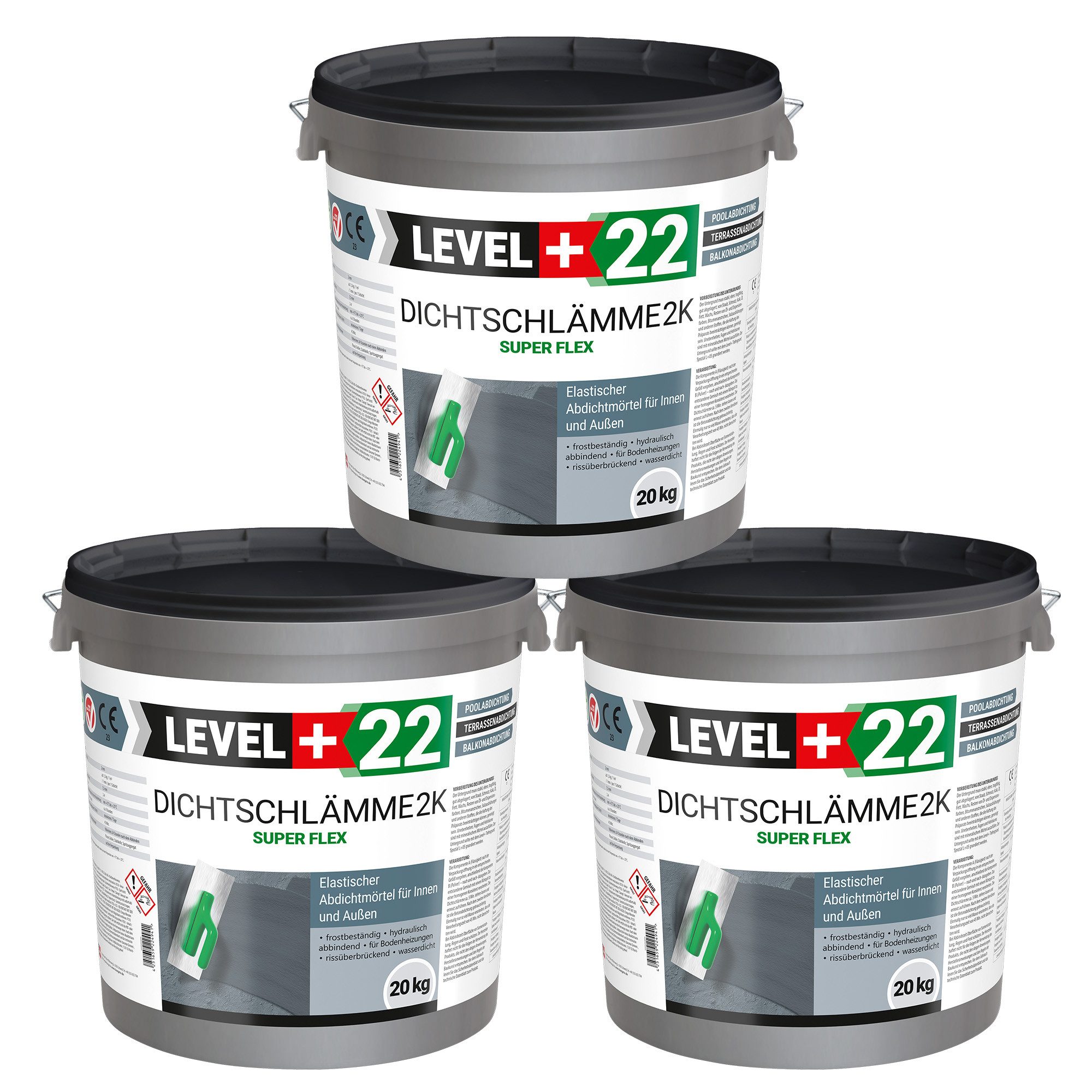Der Untergrund muss stabil, eben, tragfähig, gut abgelagert, von Staub, Schmutz, Kalk, Öl, Fett, Wachs, Resten von Öl- und Dispersionsfarben, Bitumenanstrichen, Salzausblühungen und anderen Stoffen, die die Haftung des Präparats beeinträchtigen können, gereinigt sein. Unebenheiten, Fugen und Hohlräume sind mit mineralischem Mörtel auszufüllen. Der Untergrund darf nicht gefroren, vereist oder mit Staunässe behaftet sein. Typische Untergründe sollten mit Level+ 05 oder Level+ 03 Tiefengrundierung vorbehandelt werden. Nicht saugfähige Holz- und Holzwerkstoffuntergründe sowie Keramikfliesen sollten mechanisch gereinigt, mit Level+ 71 Natronlauge (70% Wasser : 30% Natronlauge) gewaschen und anschließend mit Fliesengrund L+17 vor dem Auftragen grundiert werden.
