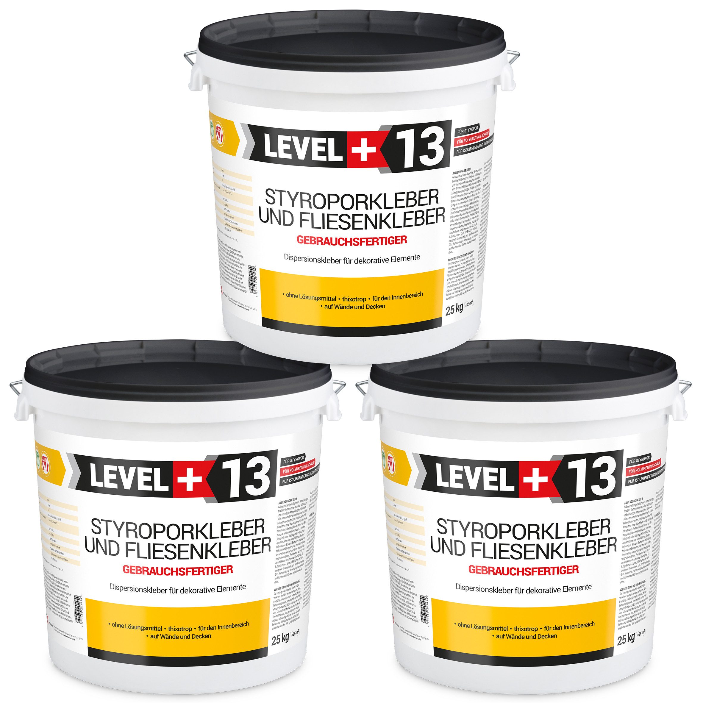 Der STYROPORKLEBER ist ein gebrauchsfertiger Dünnschichtkleber für Dekorelemente und Styropor. Level Plus 13 ist haftstark; zur vielseitiger Anwendung. Das Produkt hat die Konsistenz einer dicken Paste. Die Abbindung und Erhärtung erfolgen durch Wasserverdunstung (die Abbindung ist nicht reversibel). Es ist gekennzeichnet durch hohe Anfangshaftfähigkeit und Elastizität. Zur Verklebung von allen Wand- und Deckenbelägen, Schaumpolystirol- und Polyurethan-Kasettendecken, Wand- und Deckenleisten, Dekorprofilen, Deckenplatten, Paneelen und Rosetten, Kork- und sonstigen Dekorelementen (in Platten, nicht in Rollen). Zur sicheren Verbindung von wärmedämmenden Schaumpolystirolplatten und Hartschaum. Der STYROPORKLEBER kann für Wanddekore aus Gips und Zement verwendet werden. Das Produkt ist vorgesehen für: Beton, Gasbeton, Putz, stark verformbare Bauteile wie: Gipskartonplatten, Spanplatte, OSB-Platten. Es ist anwendbar für vertikale und horizontale Flächen in Innenräumen. Das Produkt ist frei von Koaleszenten und Lösemittel. Es belastet die Umwelt nicht. HINWEIS!! NICHT FÜR KORKROLLEN GEEIGNET!!